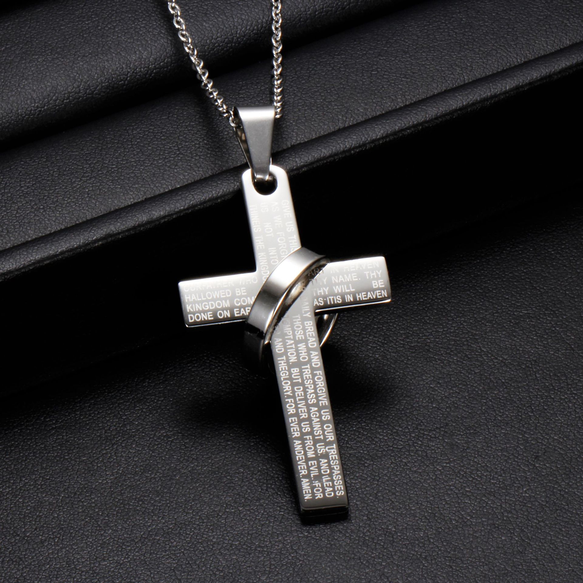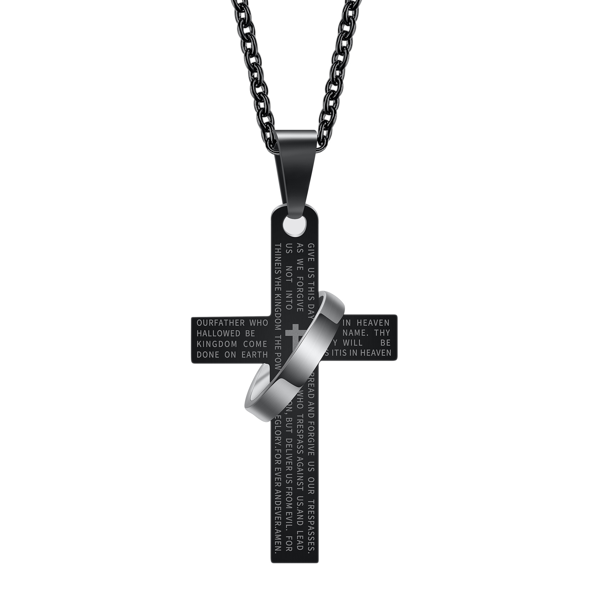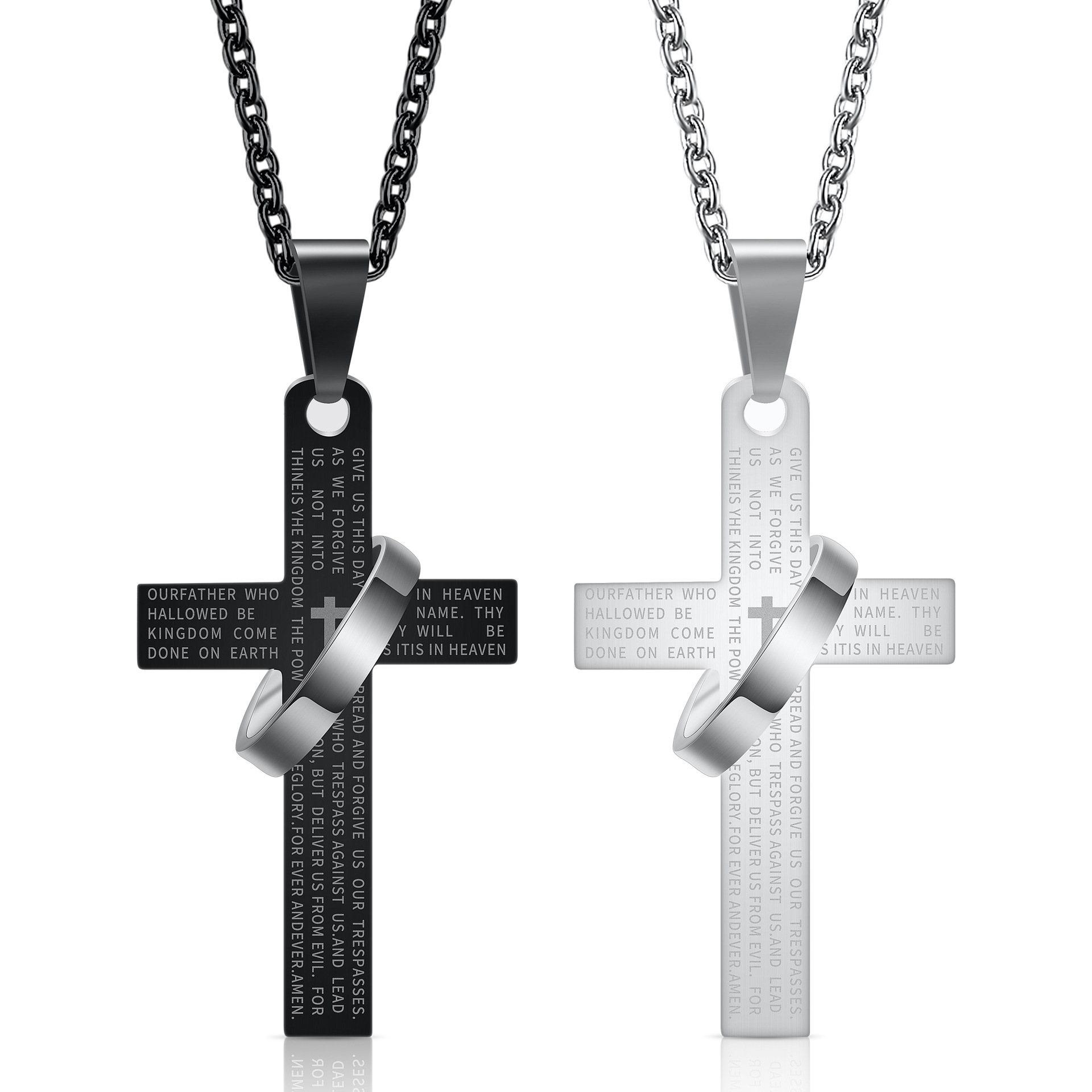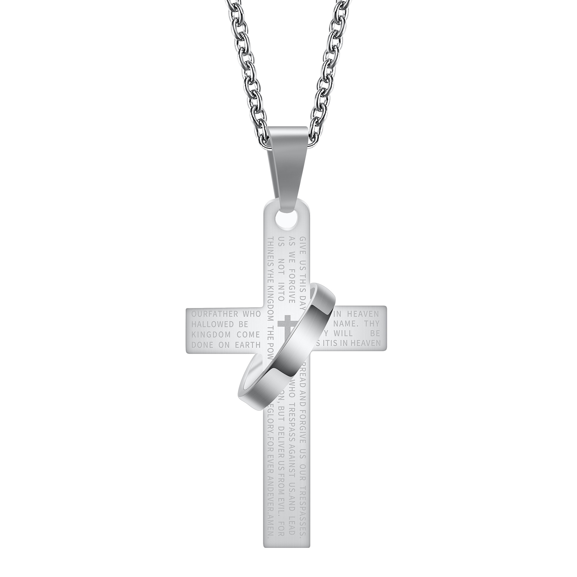 Cross-Border Hot Selling Personalized Cross Ring Necklace Stainless Steel Personalized Hip-Hop Punk Long Necklace Versatile Wholesale