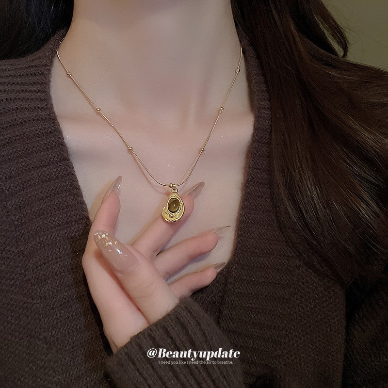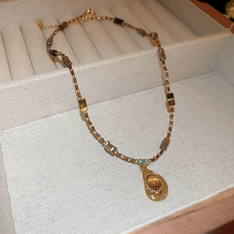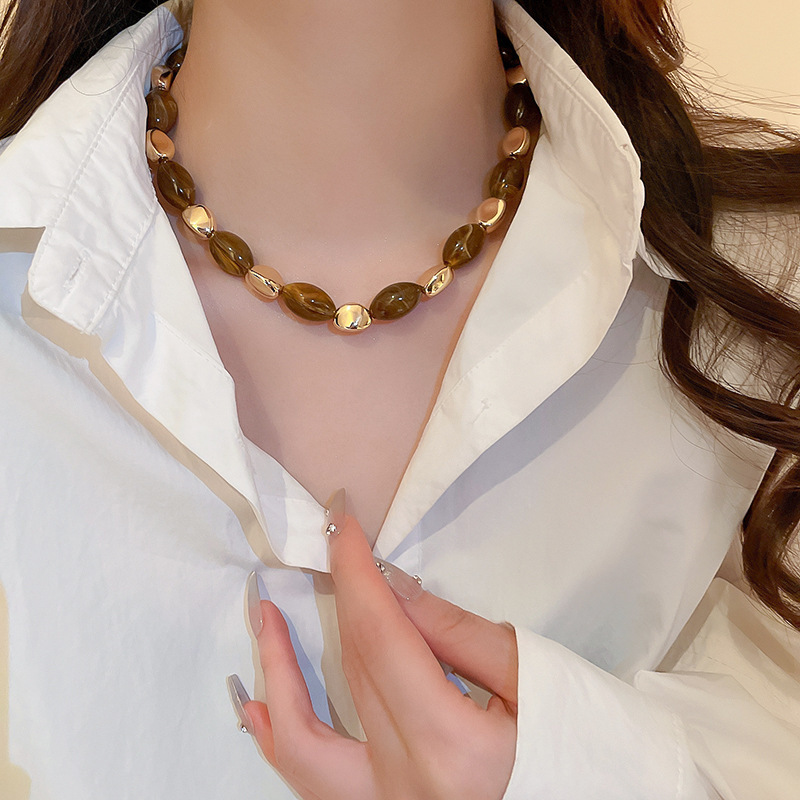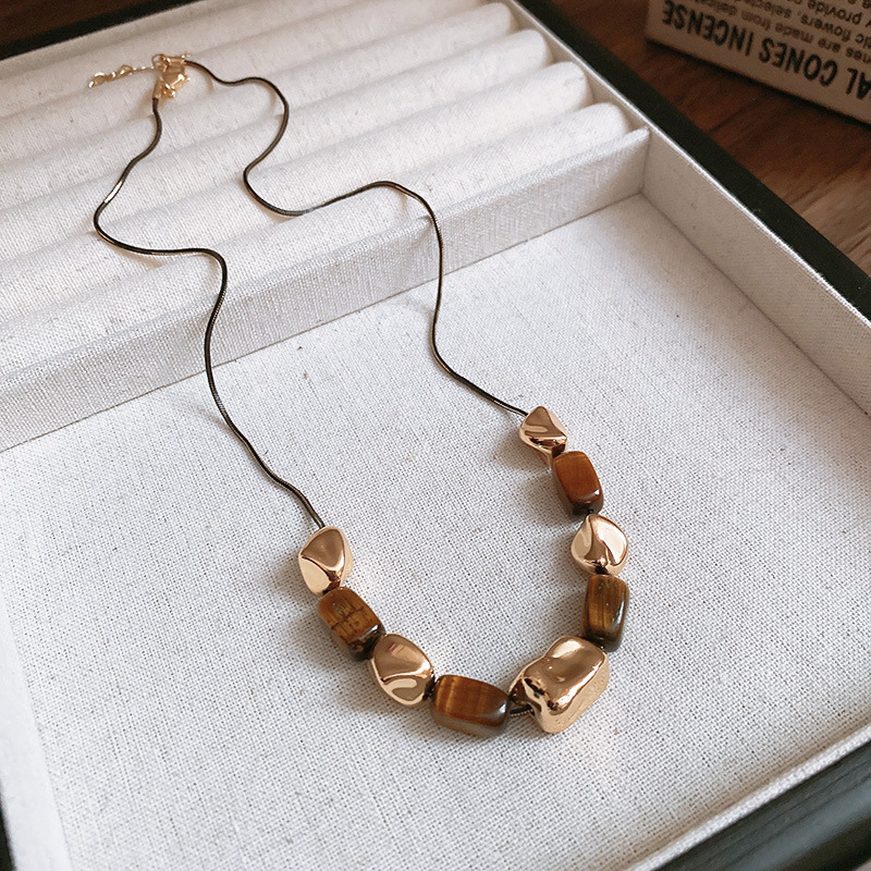 Color: 8#Necklace-gold-brown-glass pearl 10mm