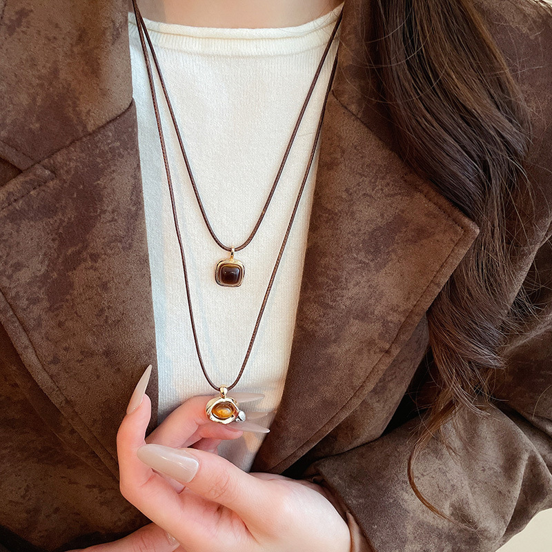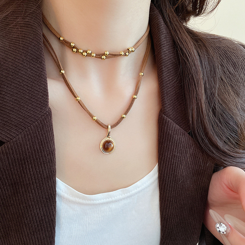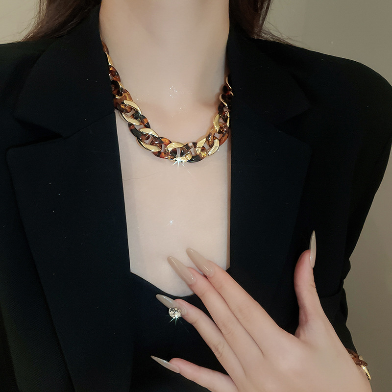 Color: 65#Necklace-gold-dark coffee contrasting color-leopard print