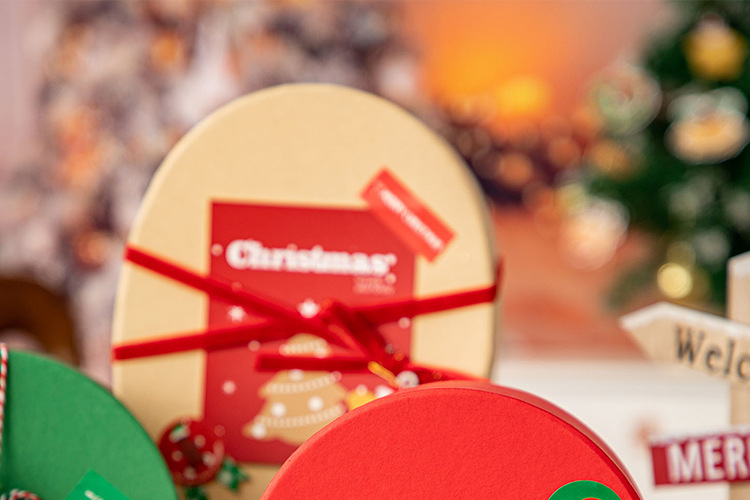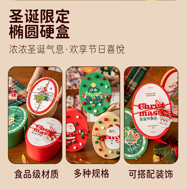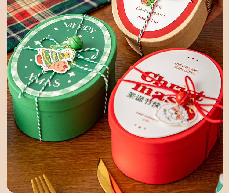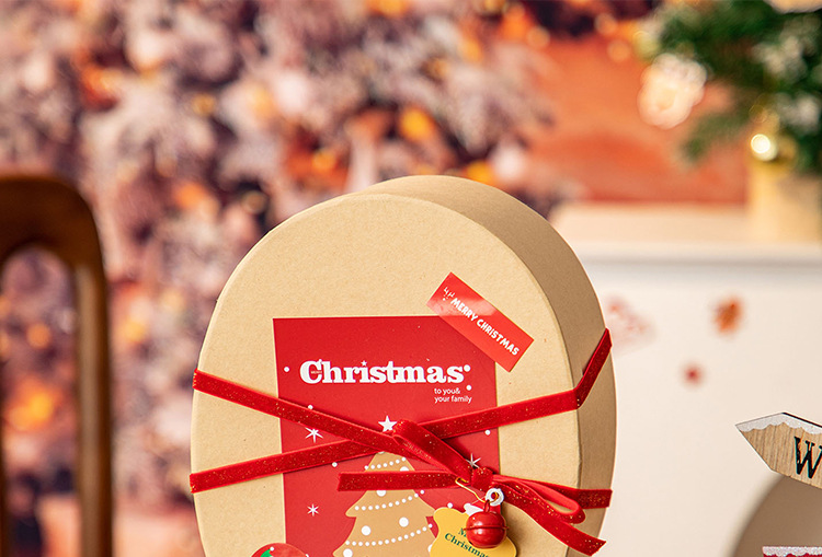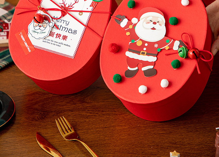 Factory direct Christmas gift box packaging box red oval cowhide carton gift box baking gift box