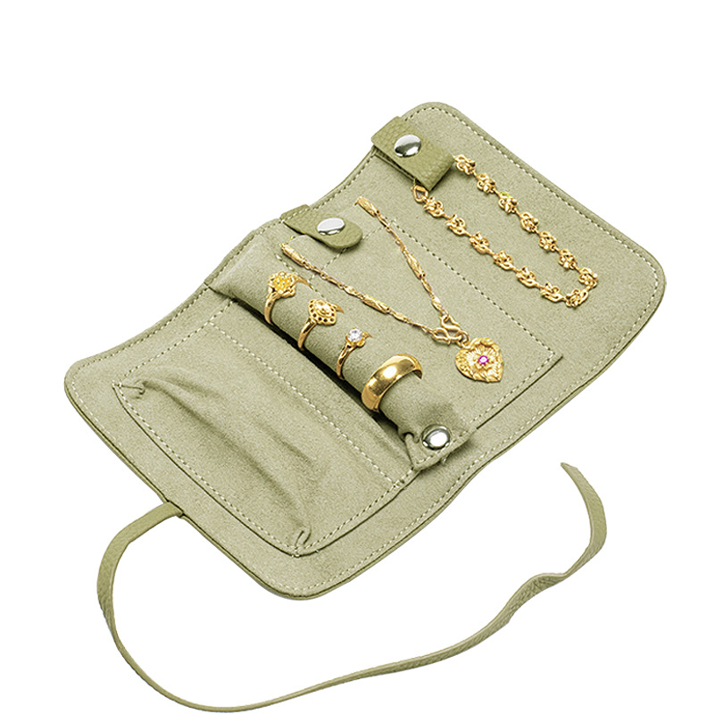 Ready-Made Leather Necklace, Earrings, and Ring Storage Bag, Portable Foldable Jewelry Bag, Accessories and Earrings Carry-On Jewelry Roll Bag