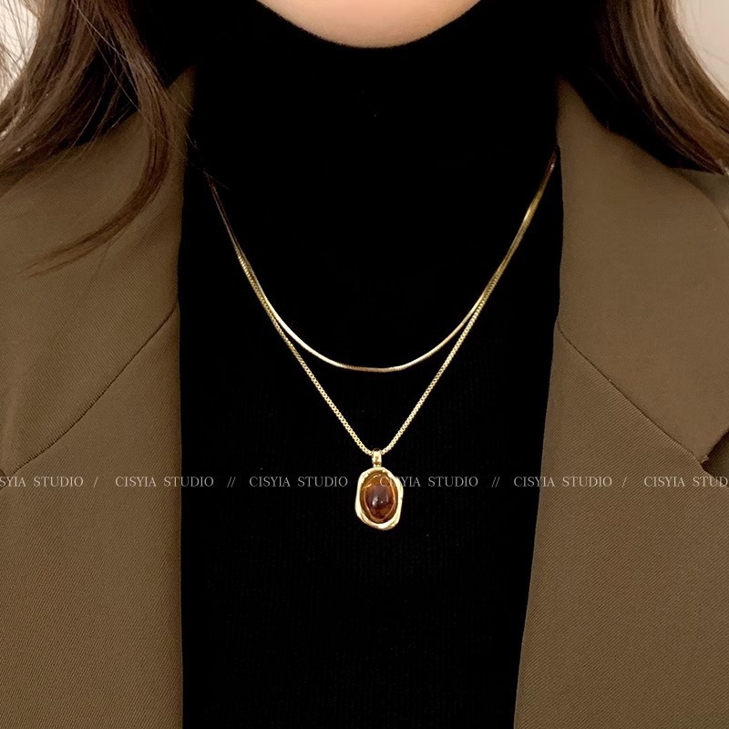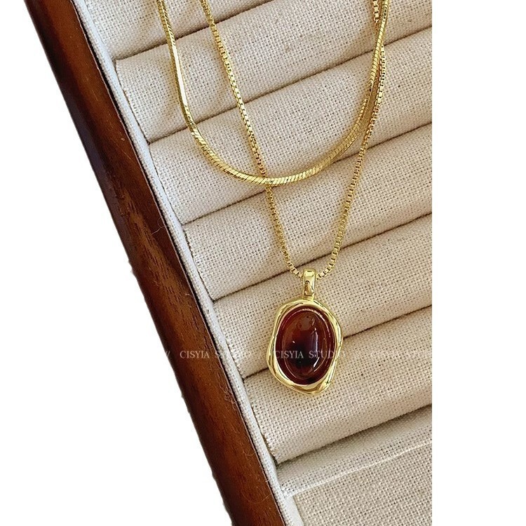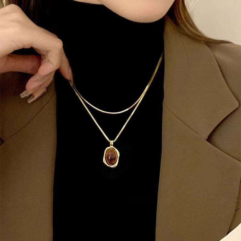 Popular Amber Stacked Gold Sweater Necklace for Girls 2024 Autumn and Winter New Light Luxury High-end Niche Sweater Chain