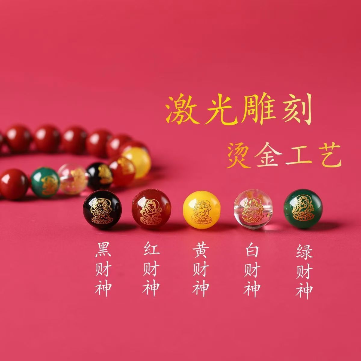 Five-way God of Wealth Bracelet Cinnabar Men's and Women's Five-color Agate Bracelet