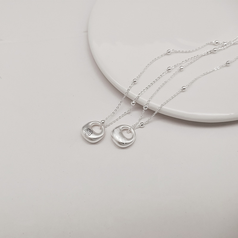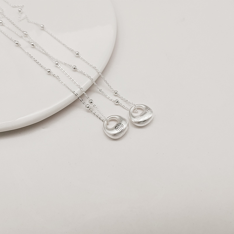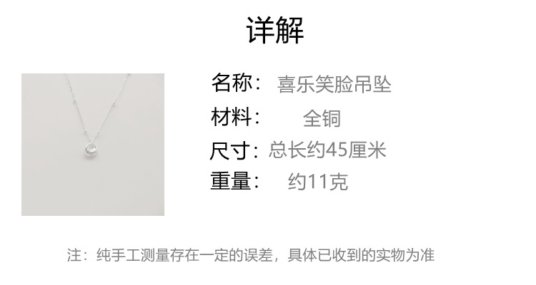 Joy Smiley Face Pendant Women's New Antique Little Fat Fu Necklace Vintage Jewelry Solid Guofeng Weight Clavicle Chain