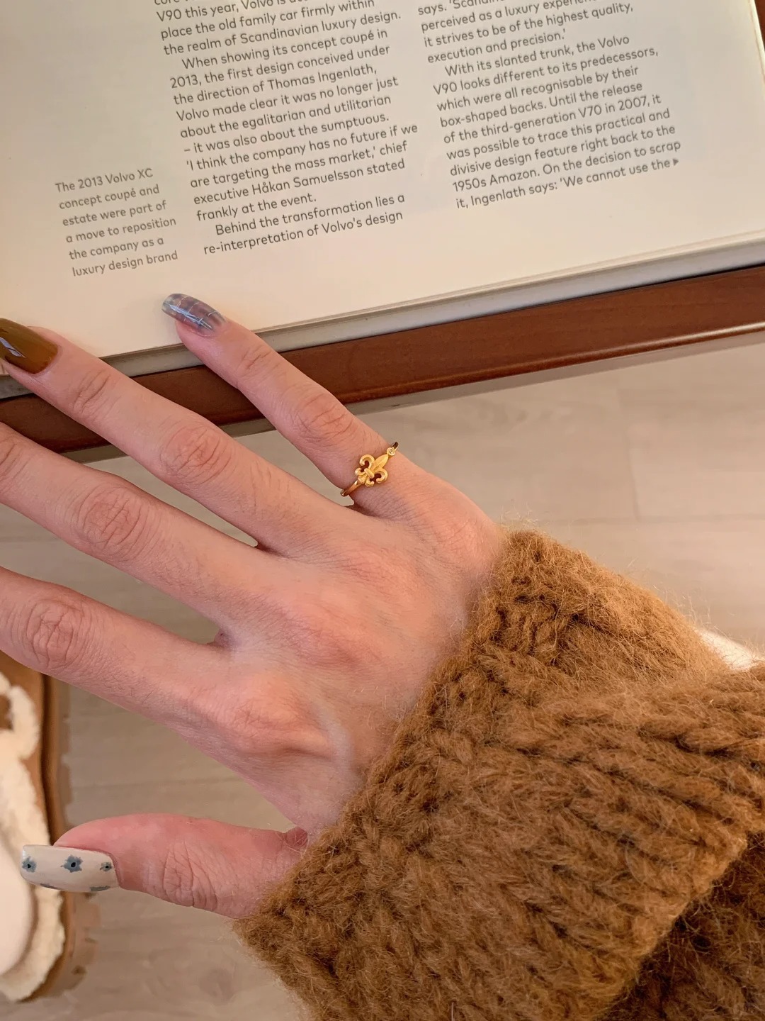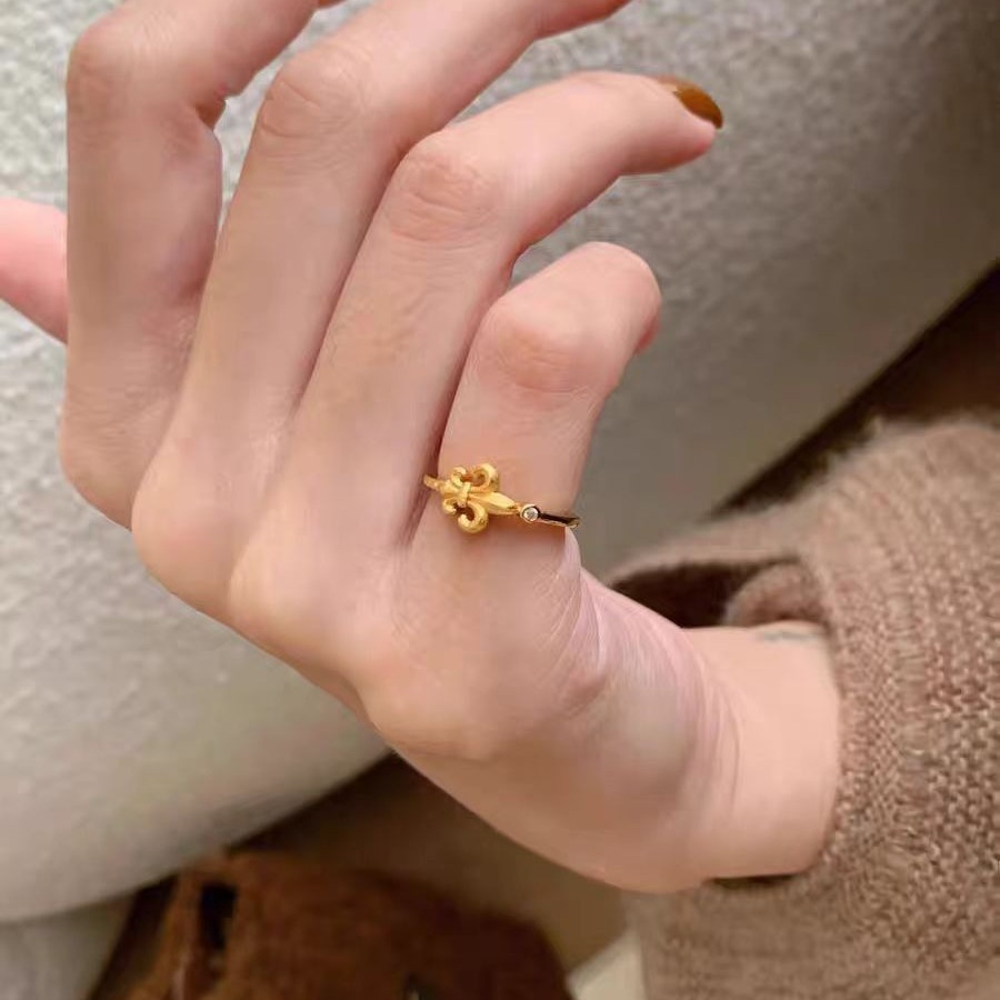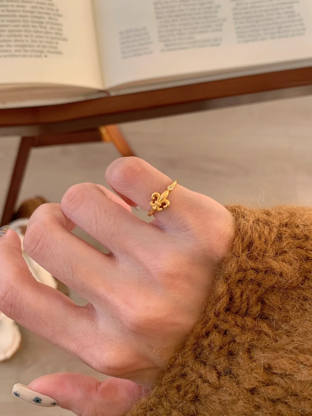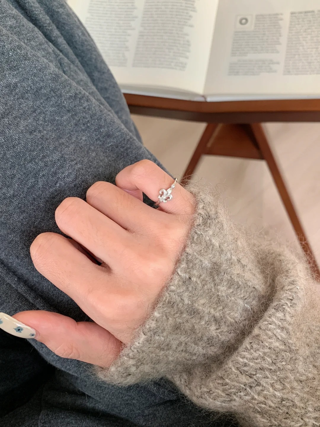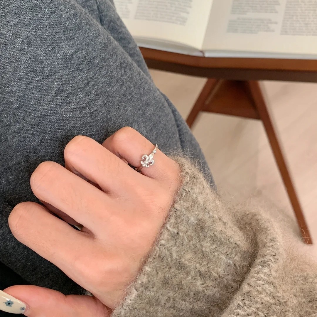 S925 Sterling Silver Iris Flower Diamond Ring Women's Niche Design Light Luxury All-match Elegant High-grade Middle Ancient Tail Ring