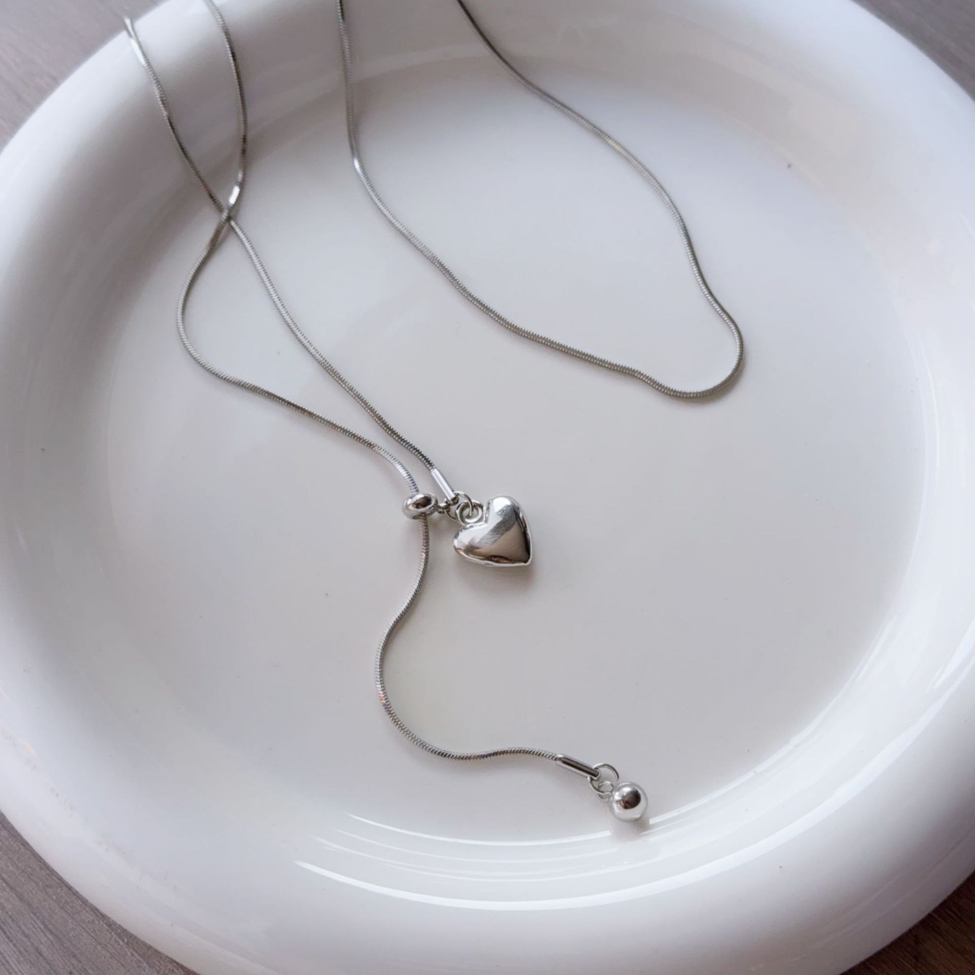 材质:钛钢蛇骨链 + 钛钢爱心 + 合金爱心 + 钛钢圆球
