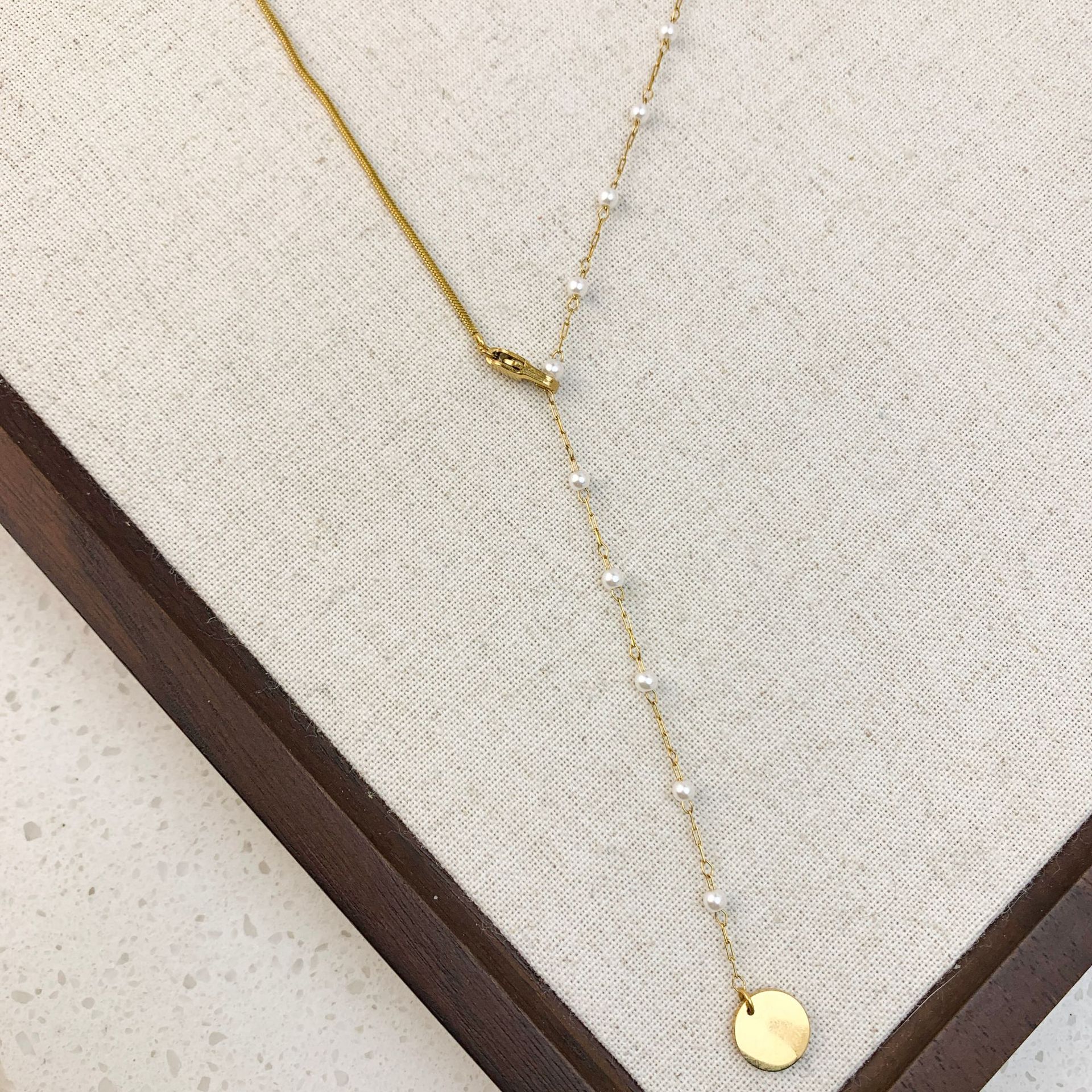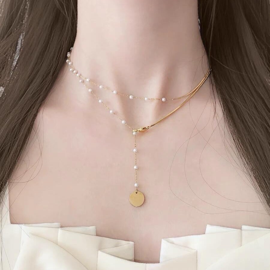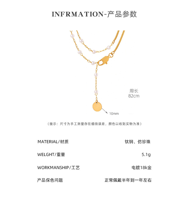 Trendy Sweater Chain Snake Bone Splicing Faux Pearl Necklace Niche Tassel Disc Plated 18K Gold Long Necklace for Women