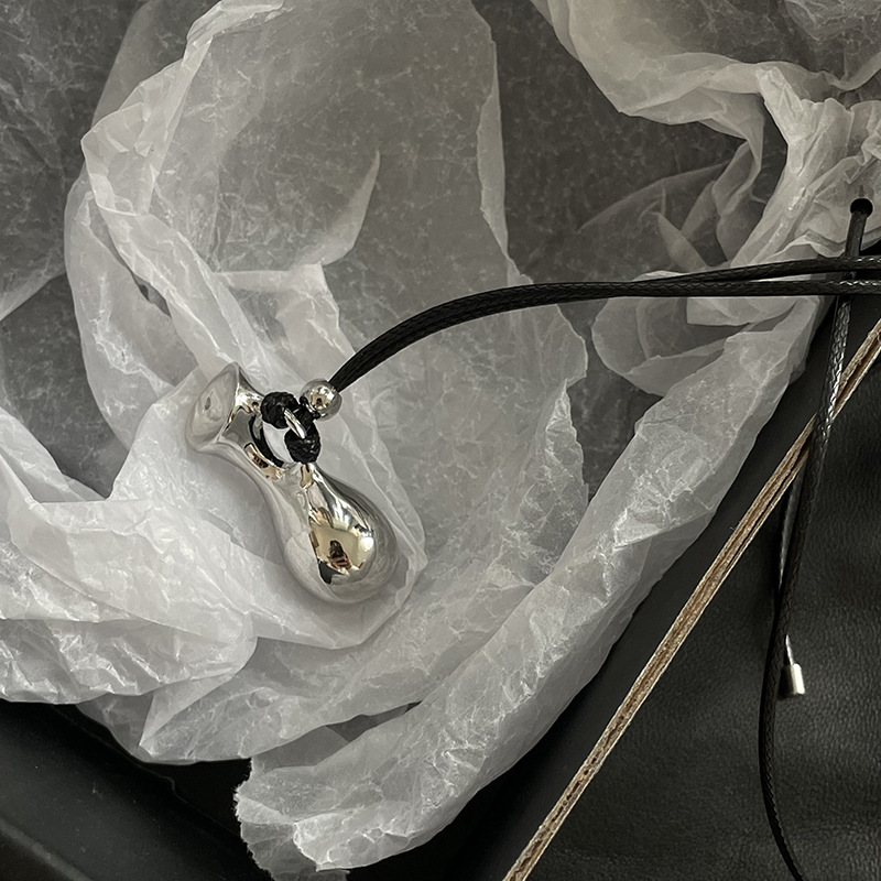 Color: Silver + leather rope