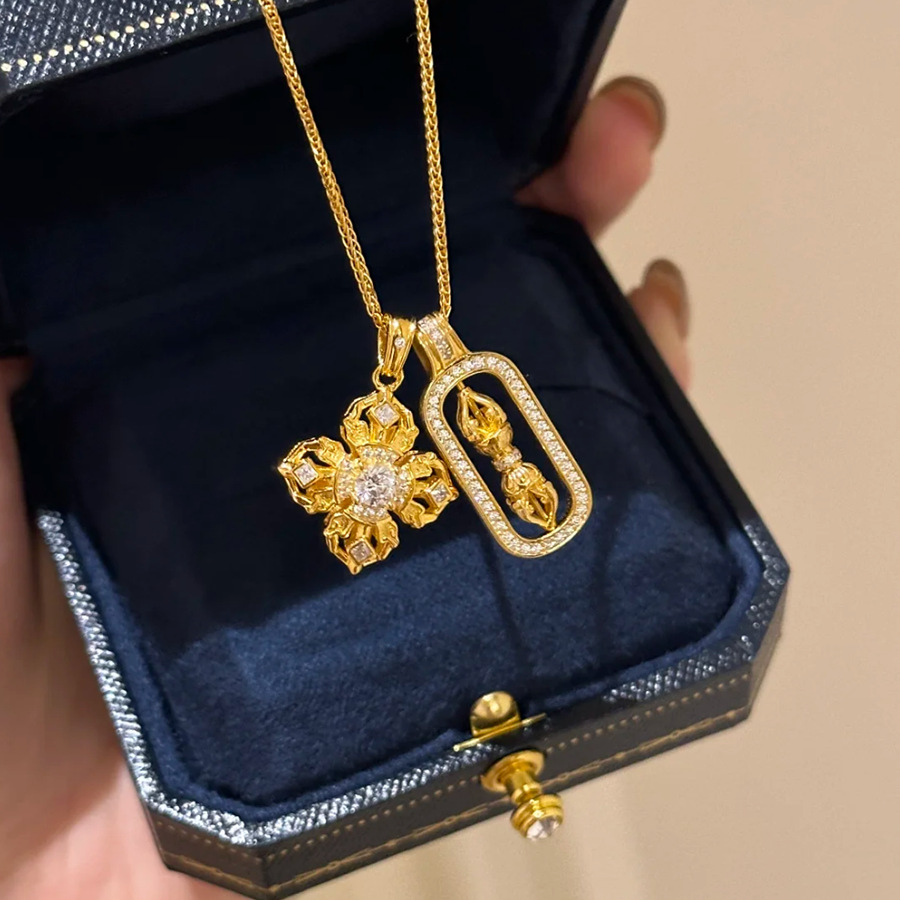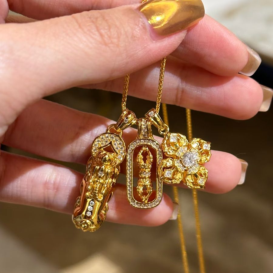 Wei Xue's Same Style Diamond Pestle and Pixiu Necklace New Chinese Style Fu Bag Gourd with Diamond Copper Money Stacked with Gold Chain for Women