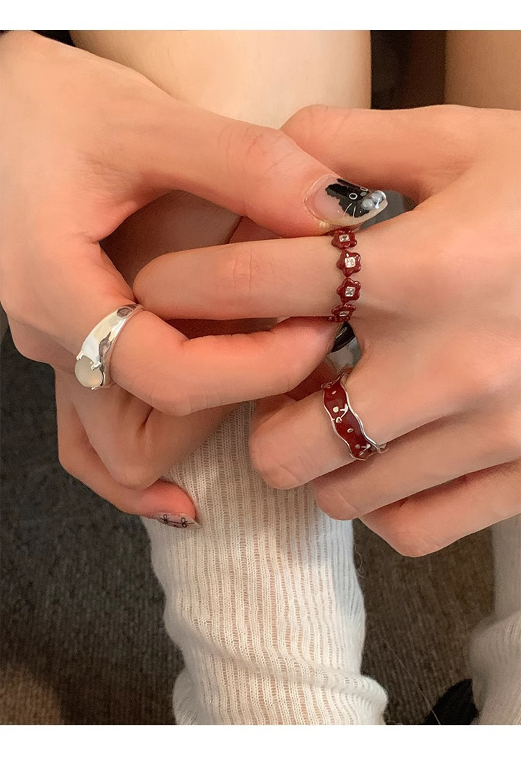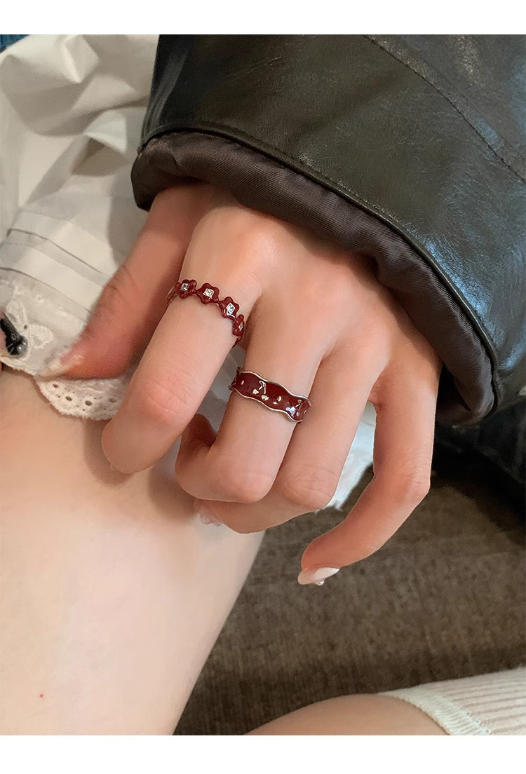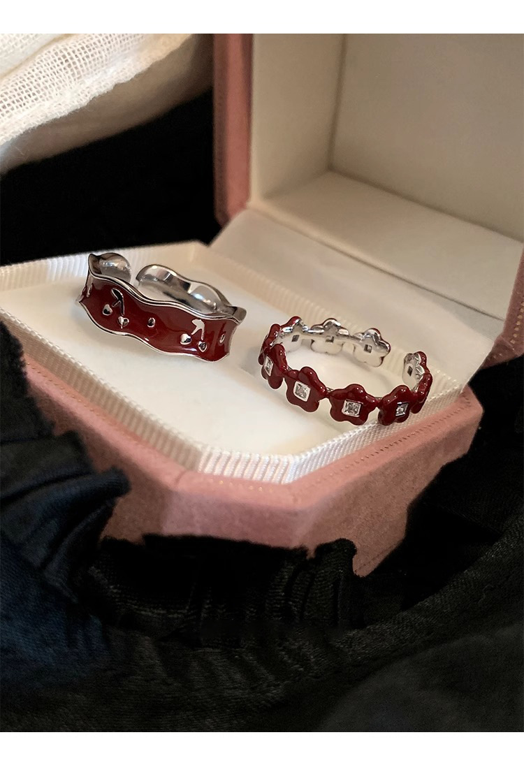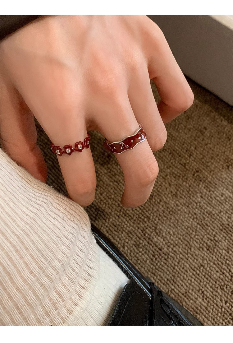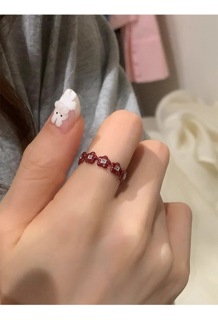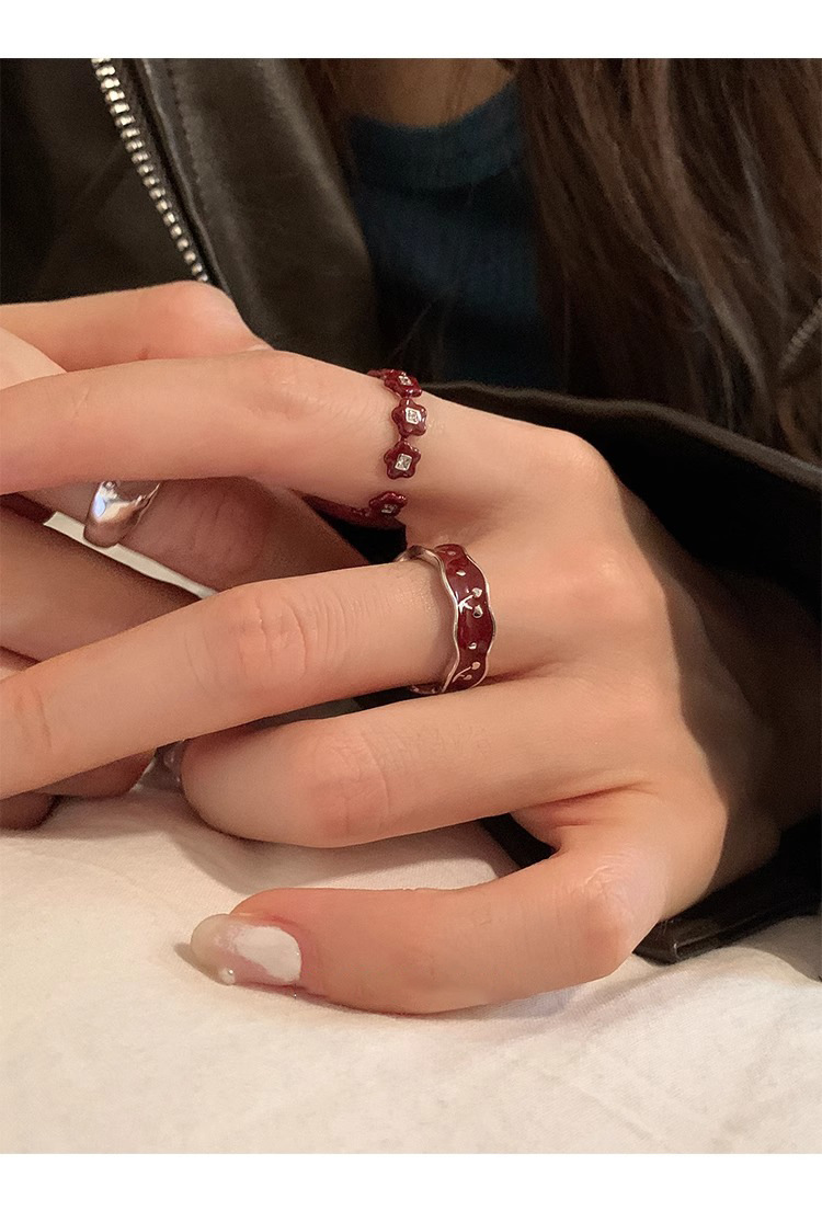 Japanese and Korean Style Retro Red Drop Glaze Flower Cherry Ring Women's Retro Niche Design Sense Ring Finger Ring Women's Ring