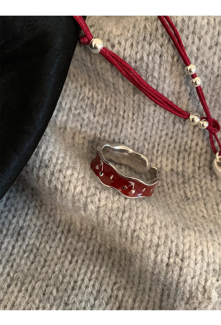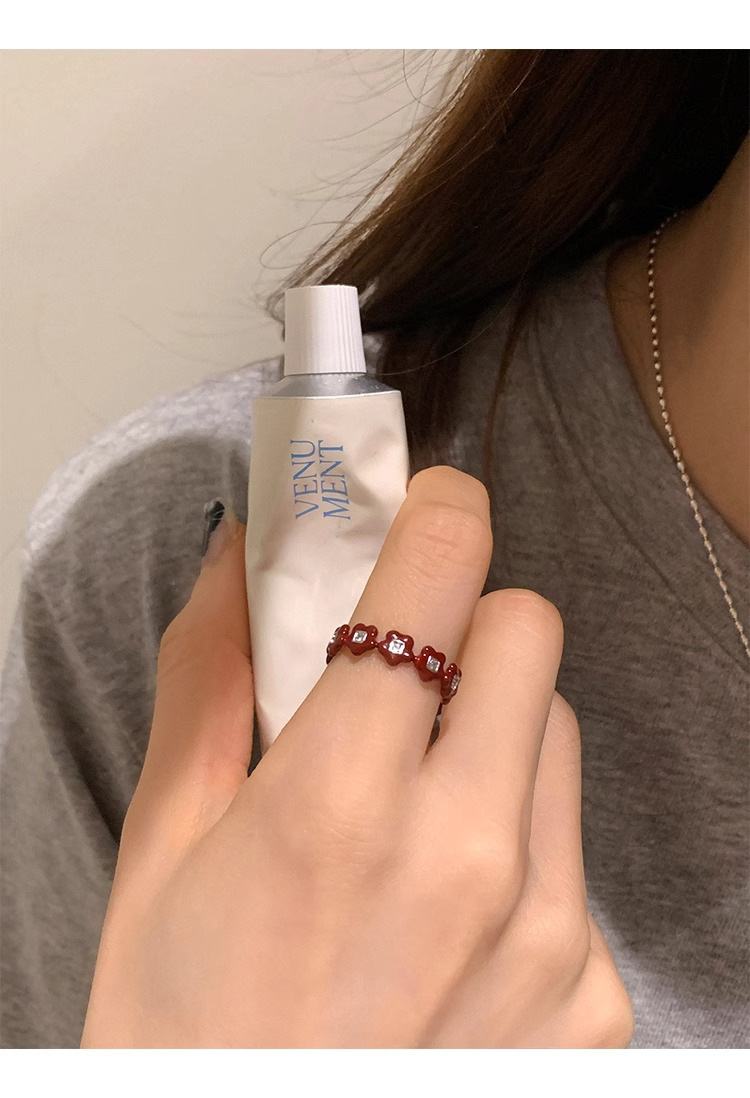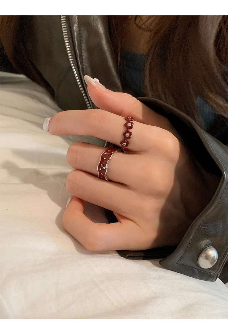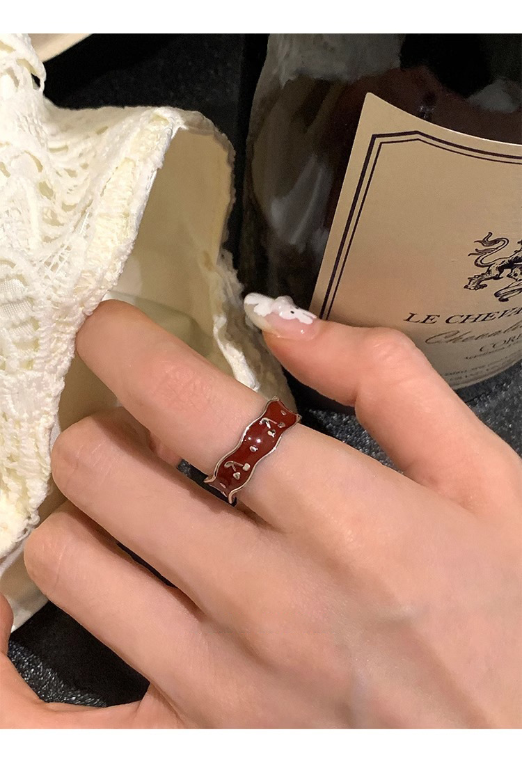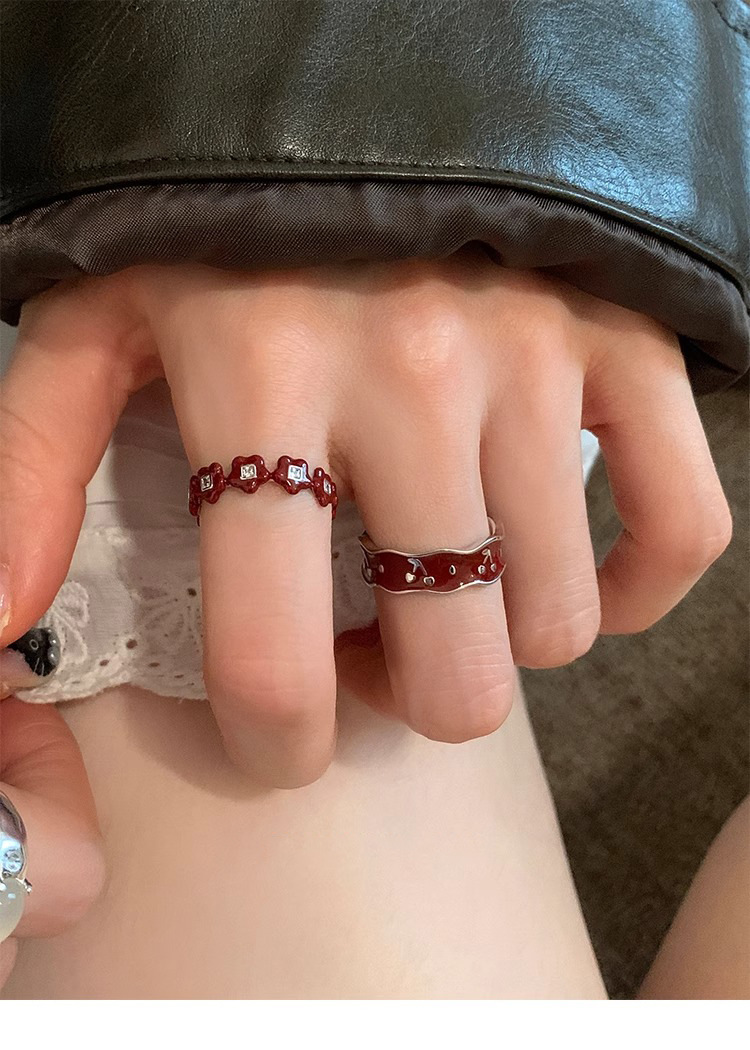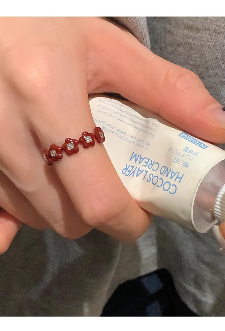 Japanese and Korean Style Retro Red Drop Glaze Flower Cherry Ring Women's Retro Niche Design Sense Ring Finger Ring Women's Ring