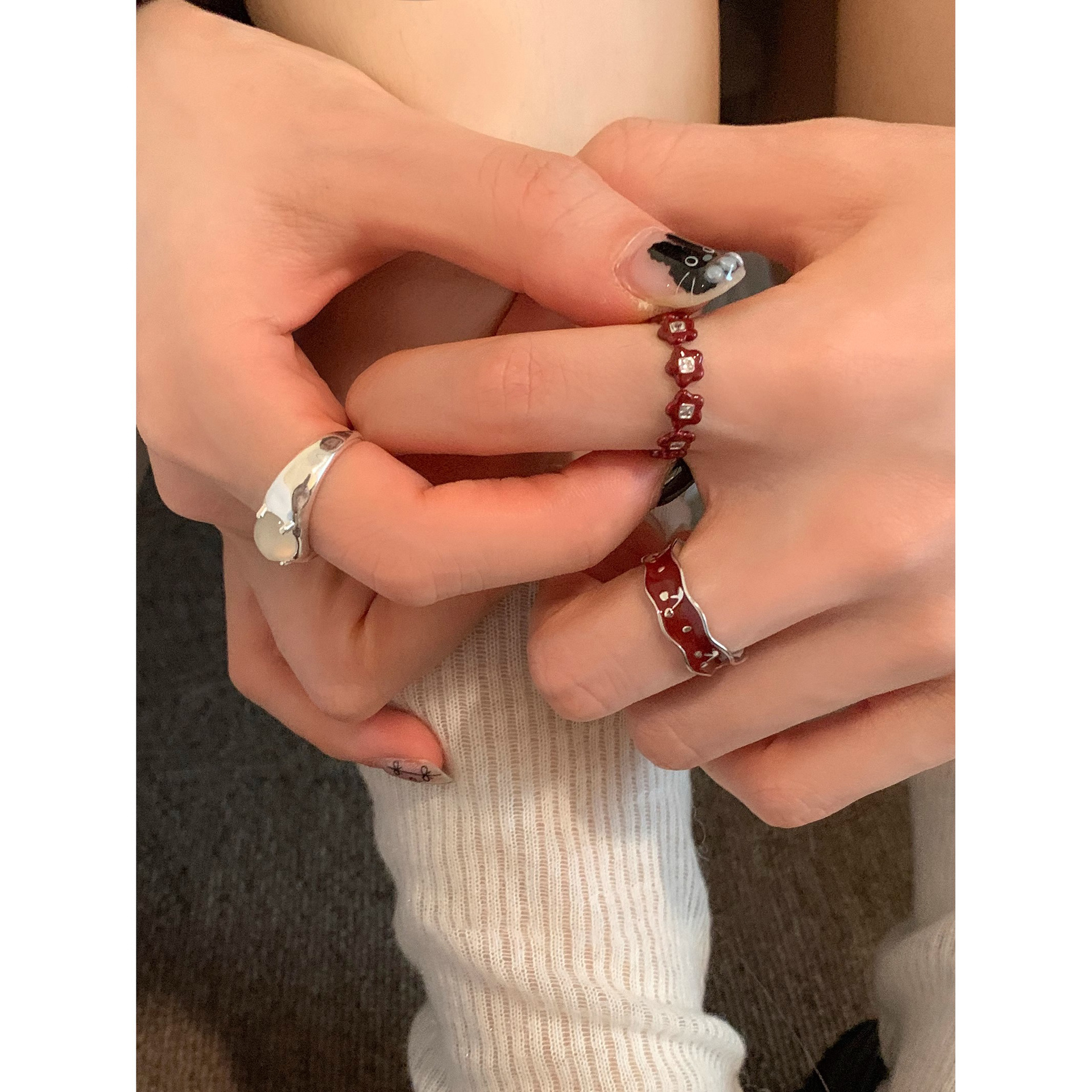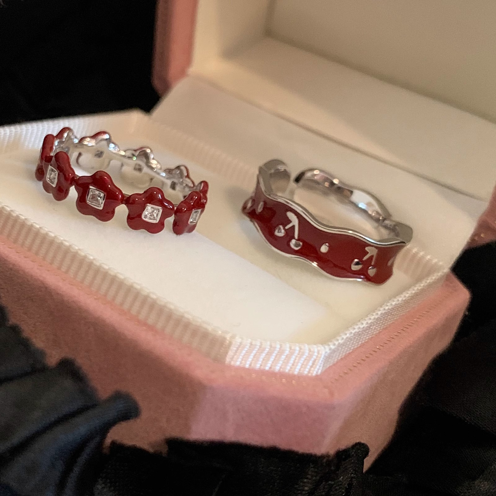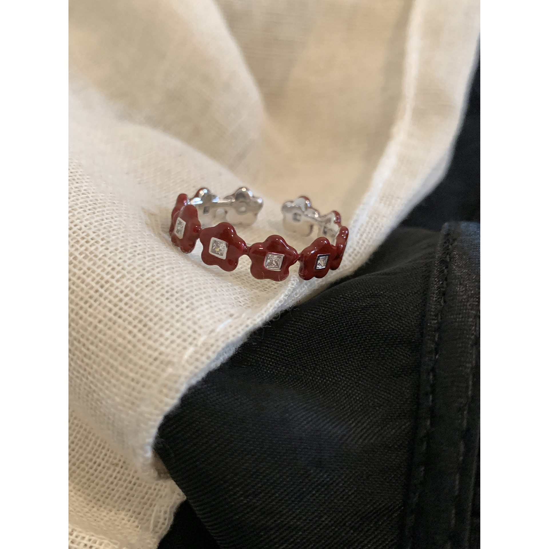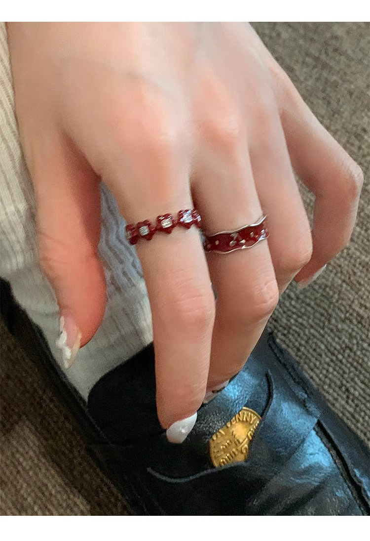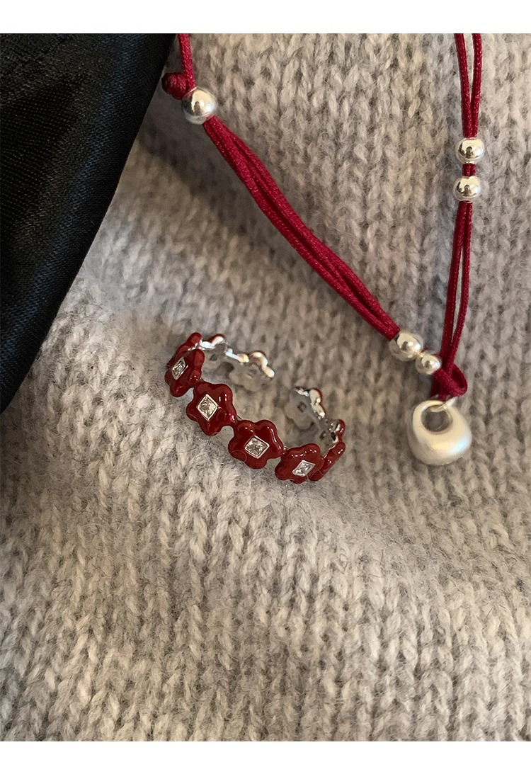 Japanese and Korean Style Retro Red Drop Glaze Flower Cherry Ring Women's Retro Niche Design Sense Ring Finger Ring Women's Ring