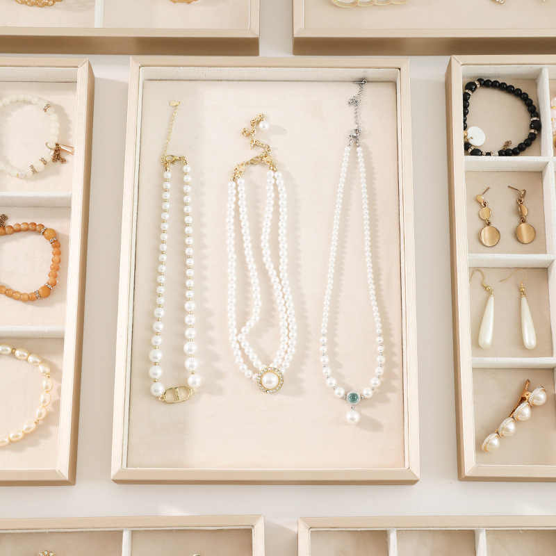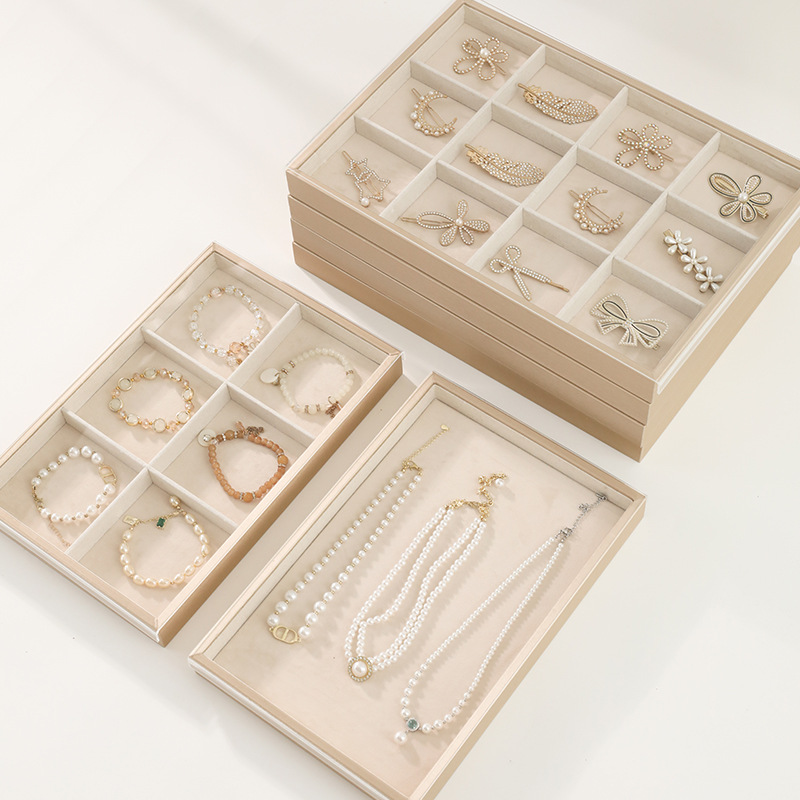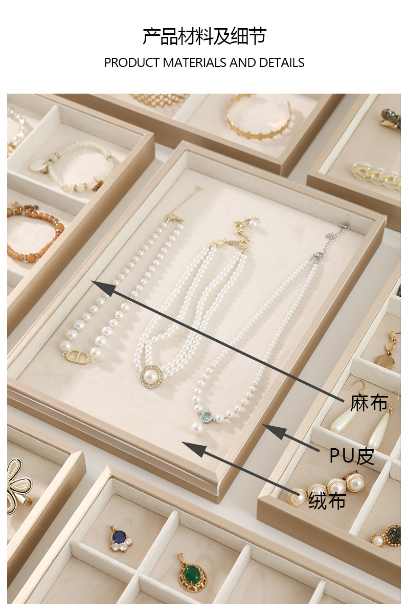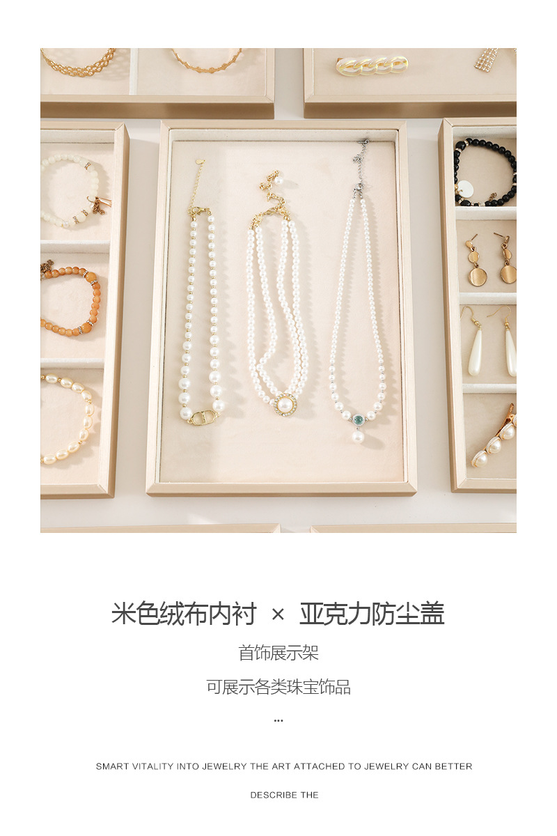 Jewelry Tray with Lid Storage Drawer Bracelet Plate Necklace Hairpin Earrings Bracelet Jewelry Jewelry Display Plate Beige