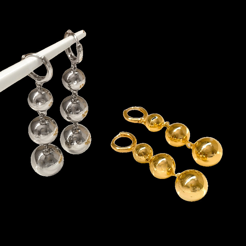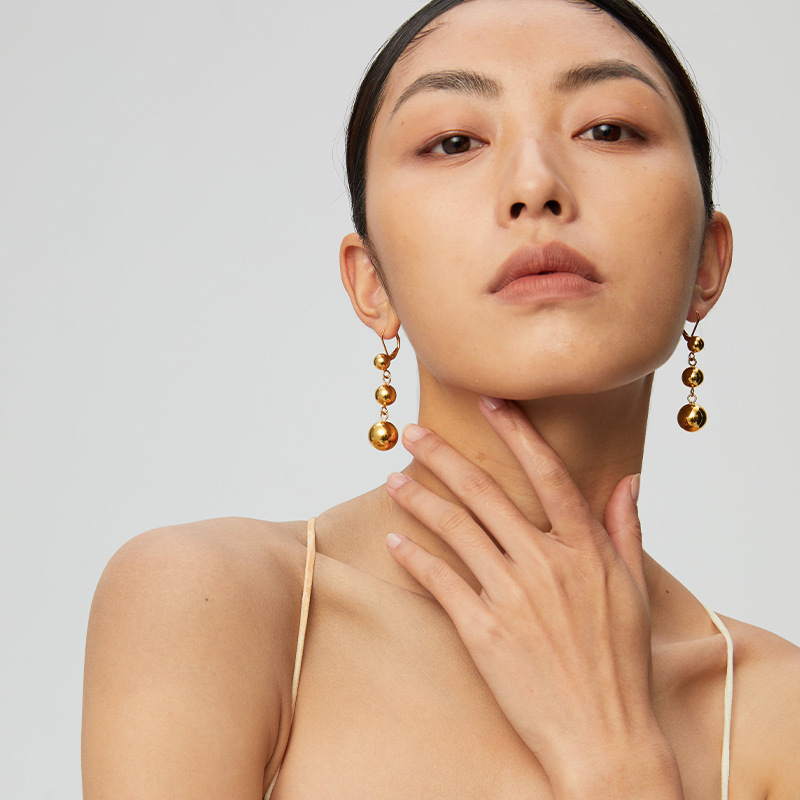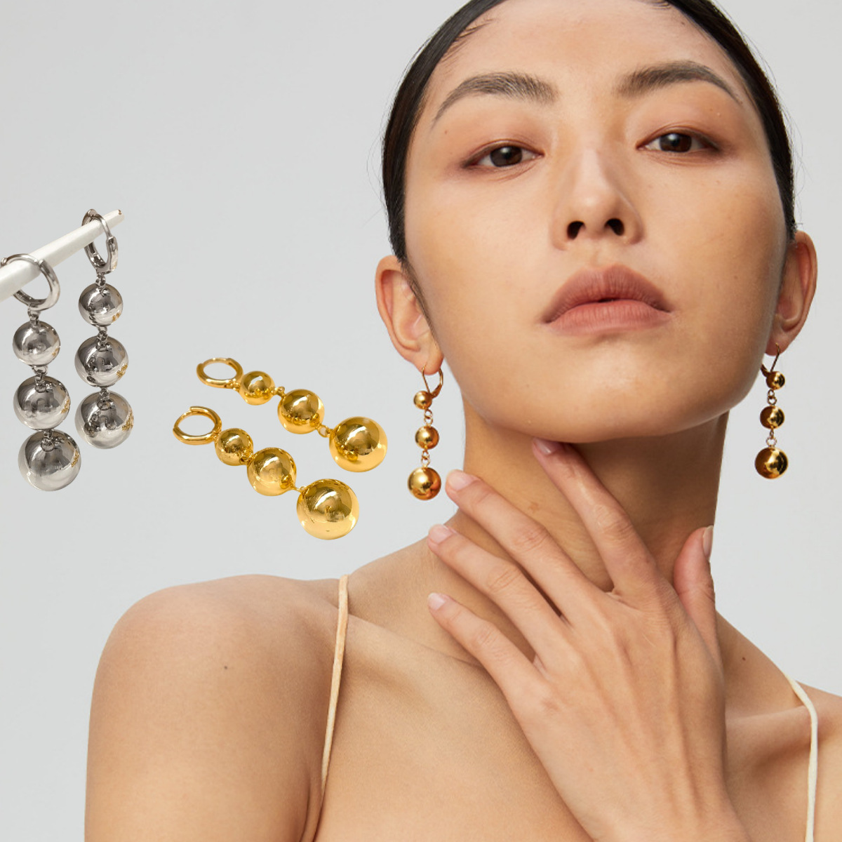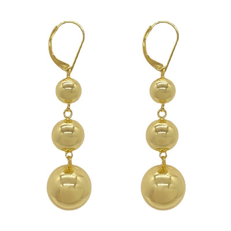 European and American style metallic earrings beaded design high-gloss round bead earrings multi-layer sphere fashion simple ear jewelry