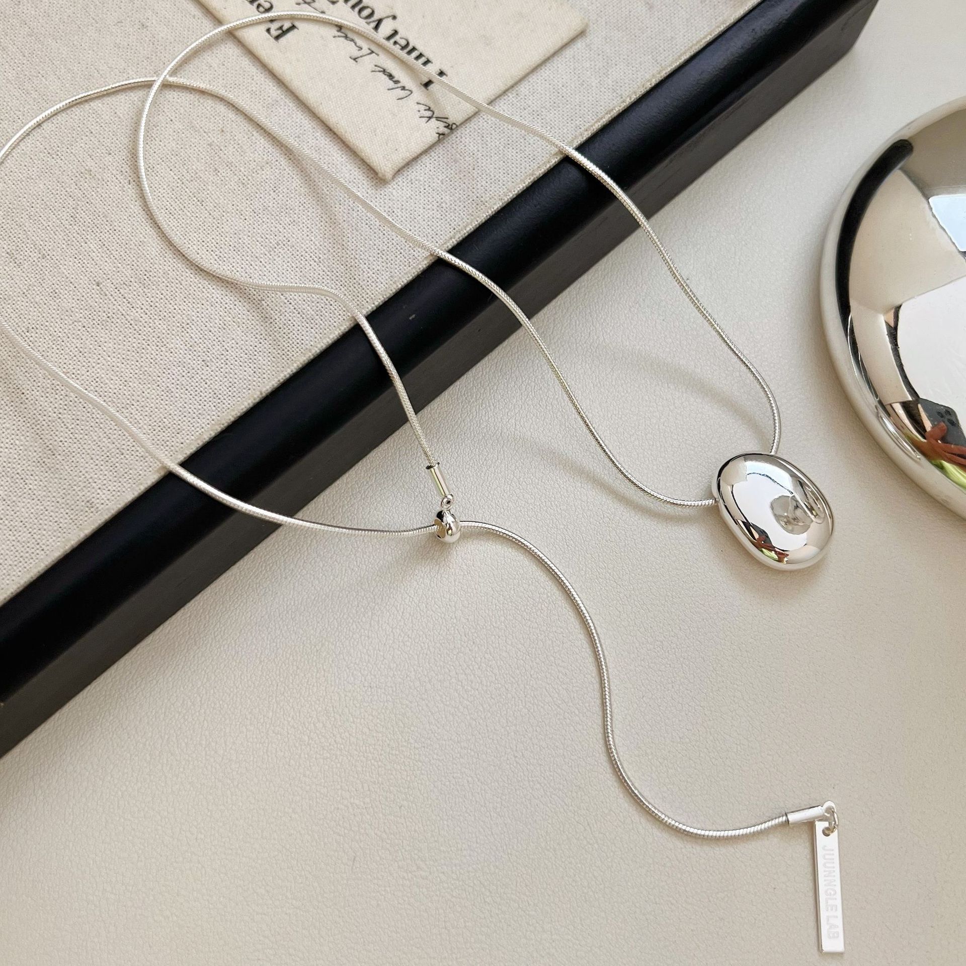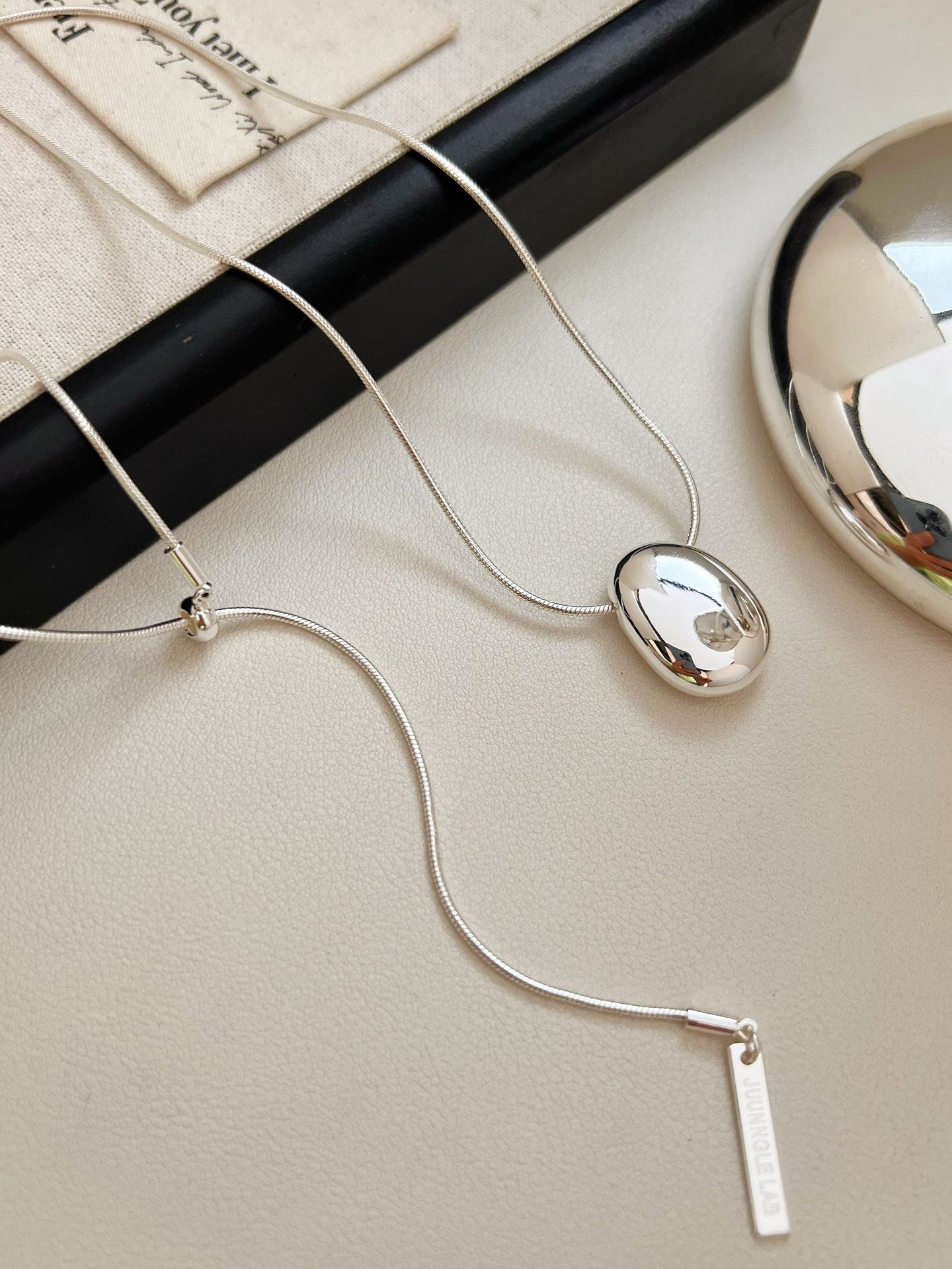 Cold Style silver Oval Pendant Necklace Fashion All-match Light Luxury Style Ginishing Metal High-end Sense Accessories