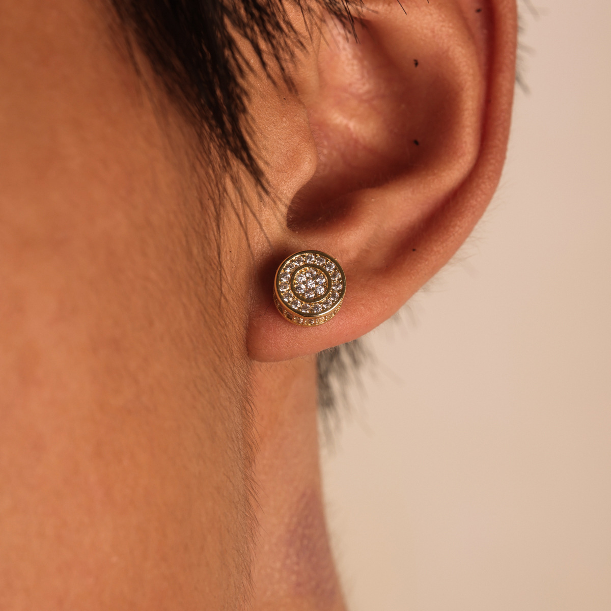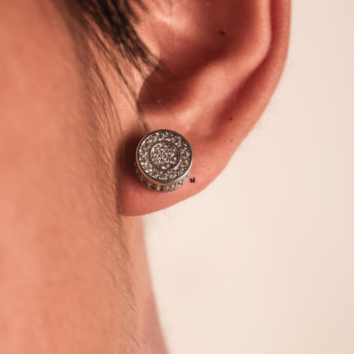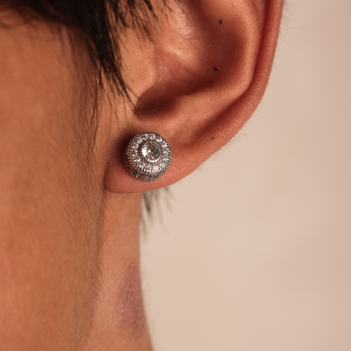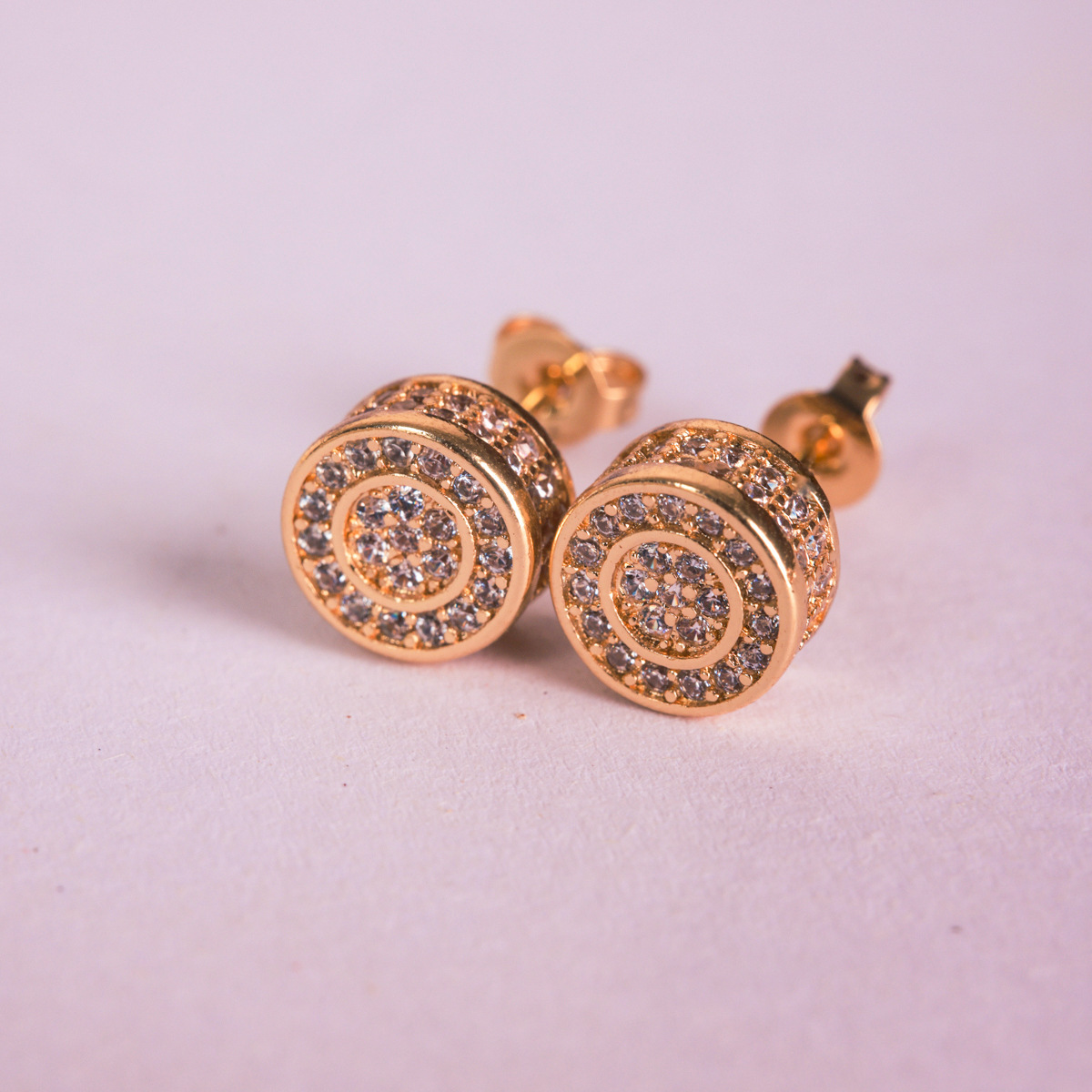 European and American Explosions Full Diamond Hip-Hop Men's Earrings Micro-inlaid Zircon Electroplated Round Square Street Personality Earrings