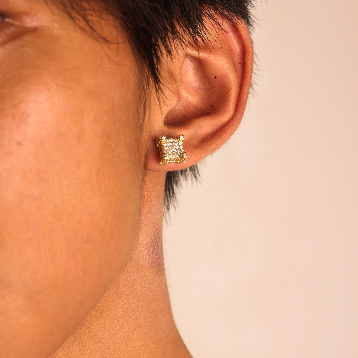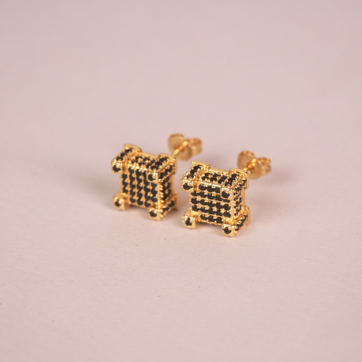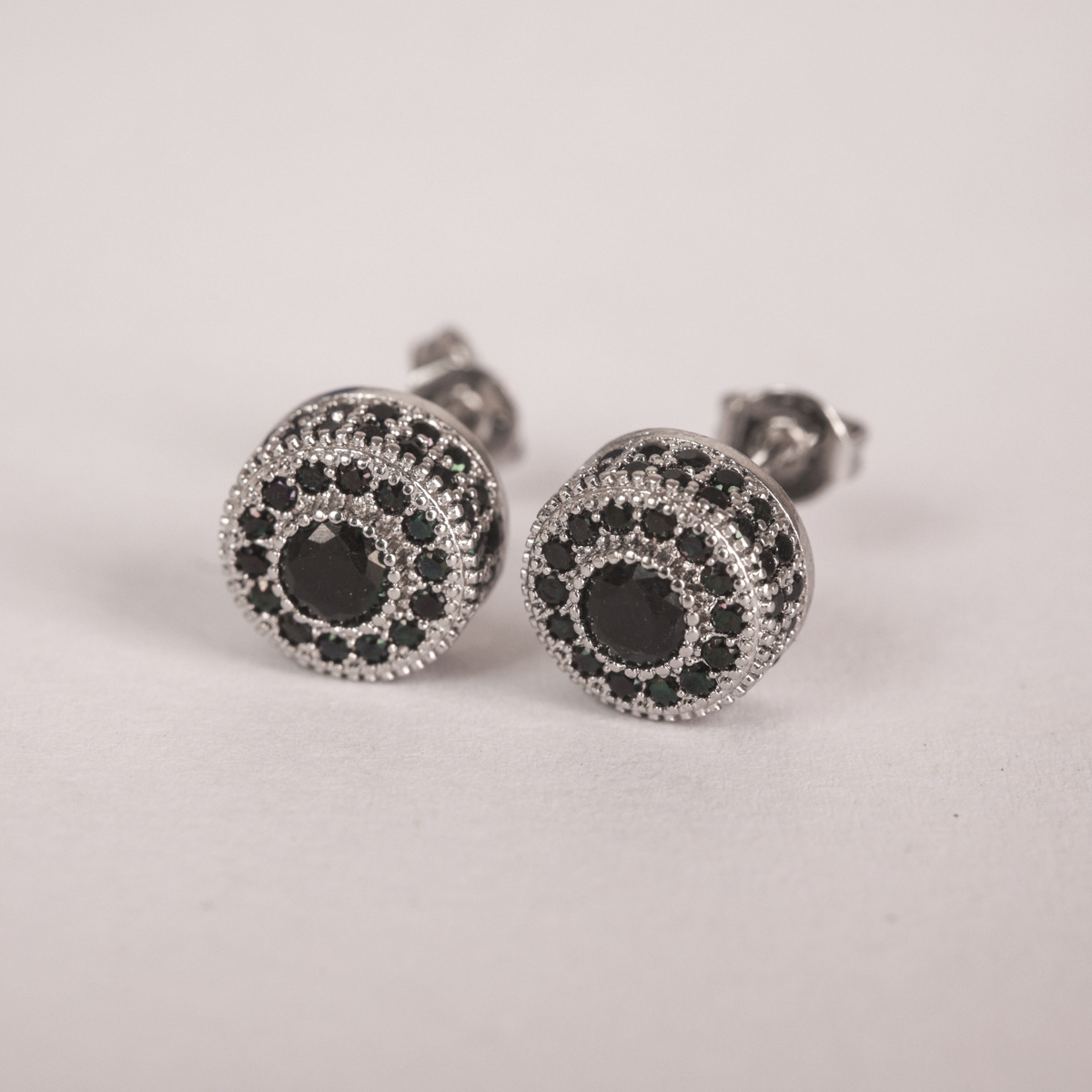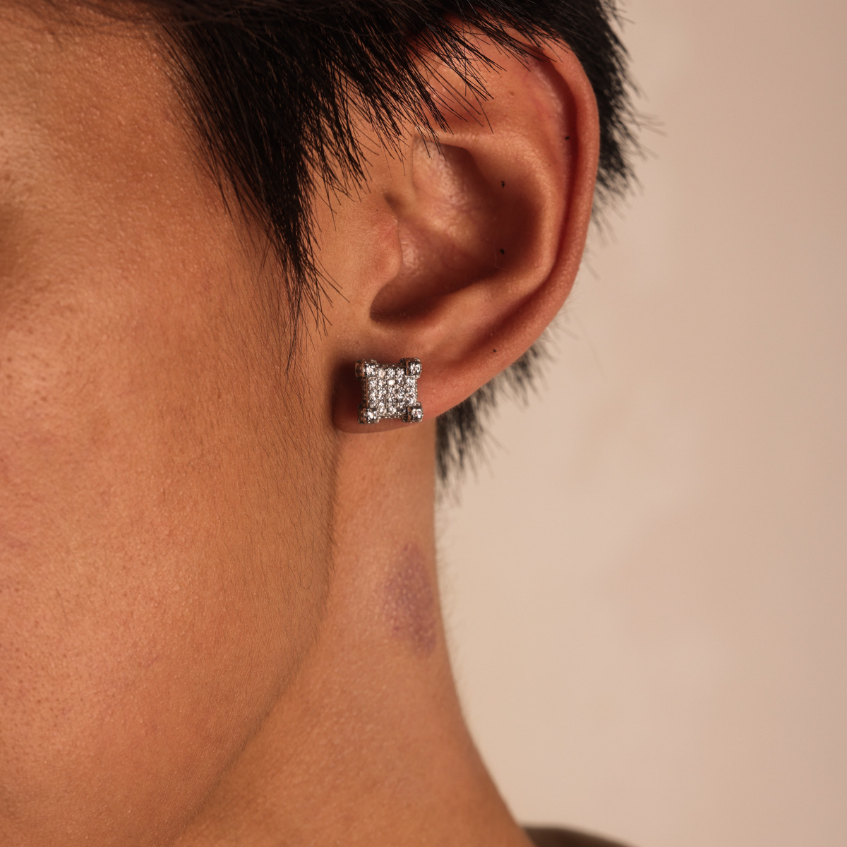 European and American Explosions Full Diamond Hip-Hop Men's Earrings Micro-inlaid Zircon Electroplated Round Square Street Personality Earrings