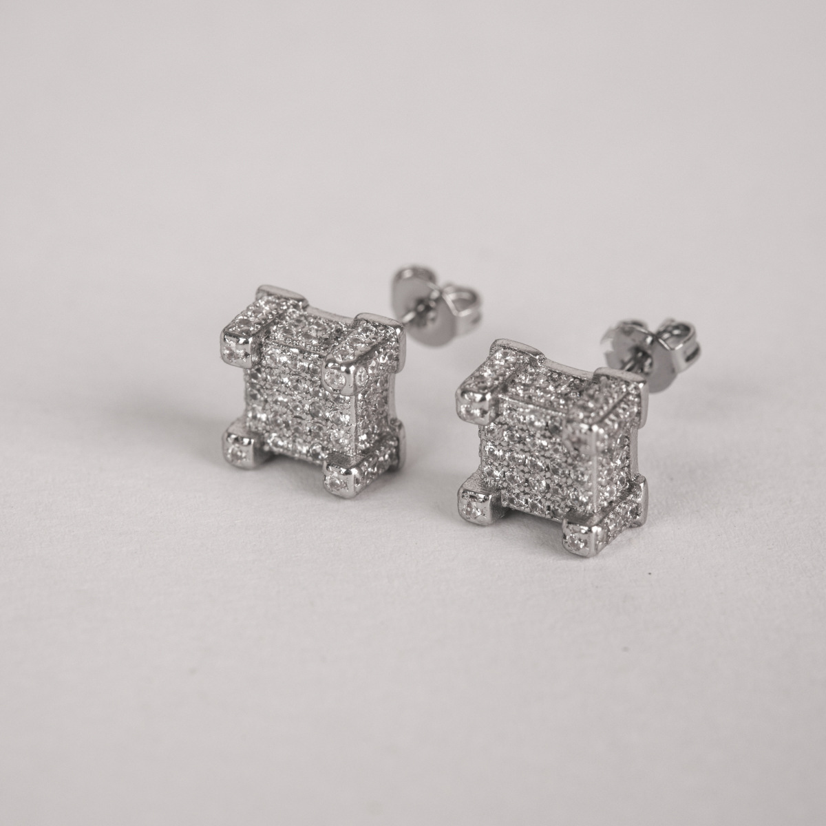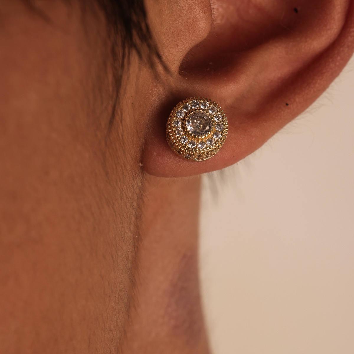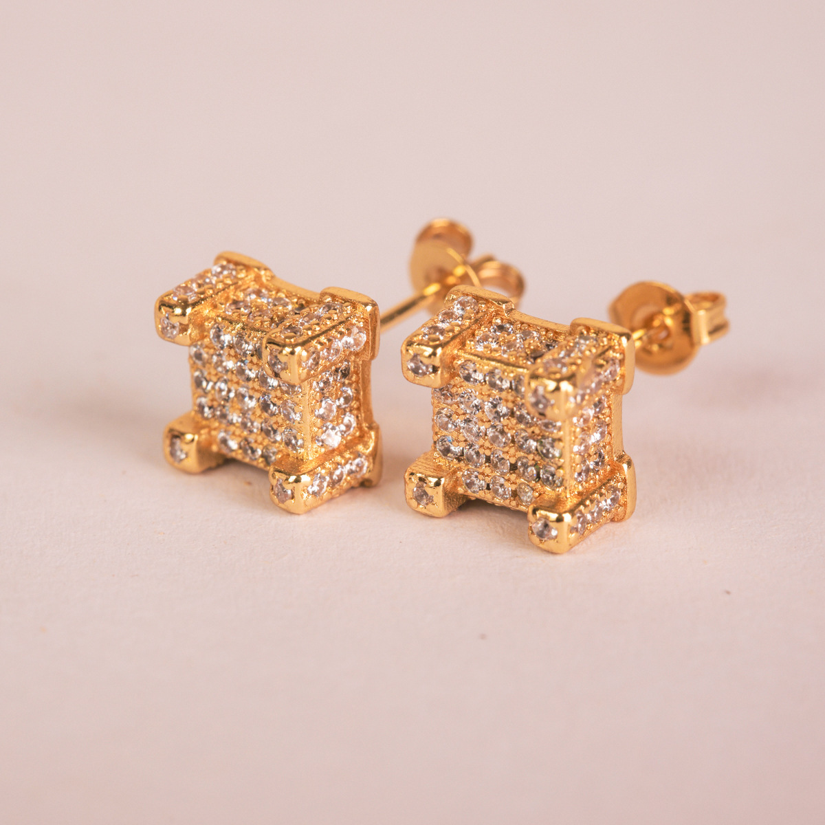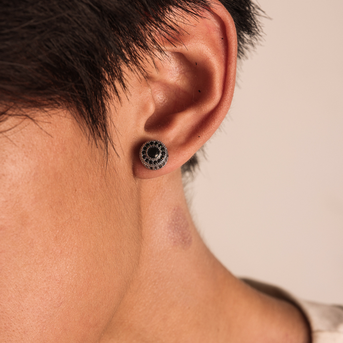 European and American Explosions Full Diamond Hip-Hop Men's Earrings Micro-inlaid Zircon Electroplated Round Square Street Personality Earrings