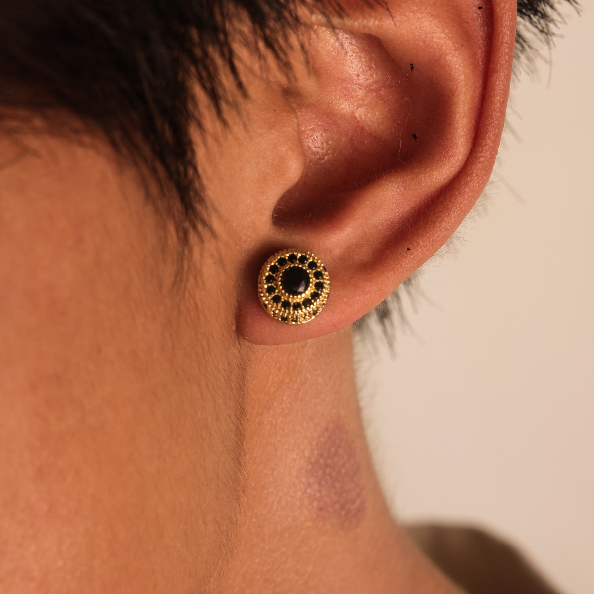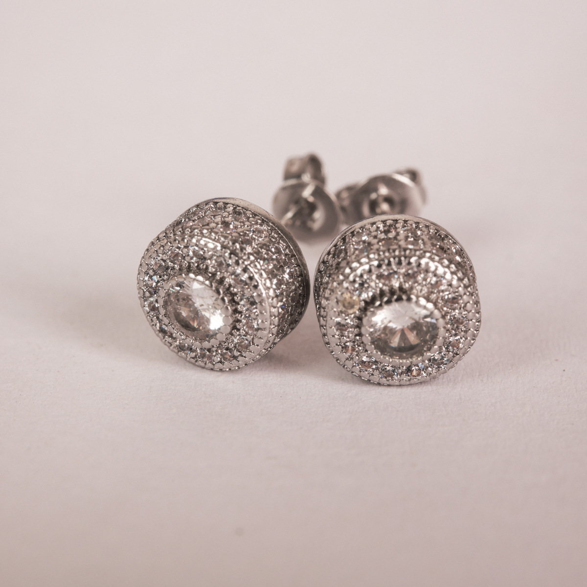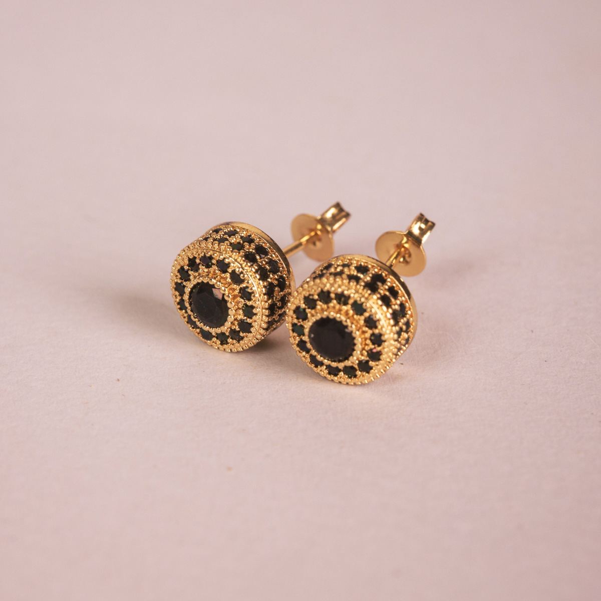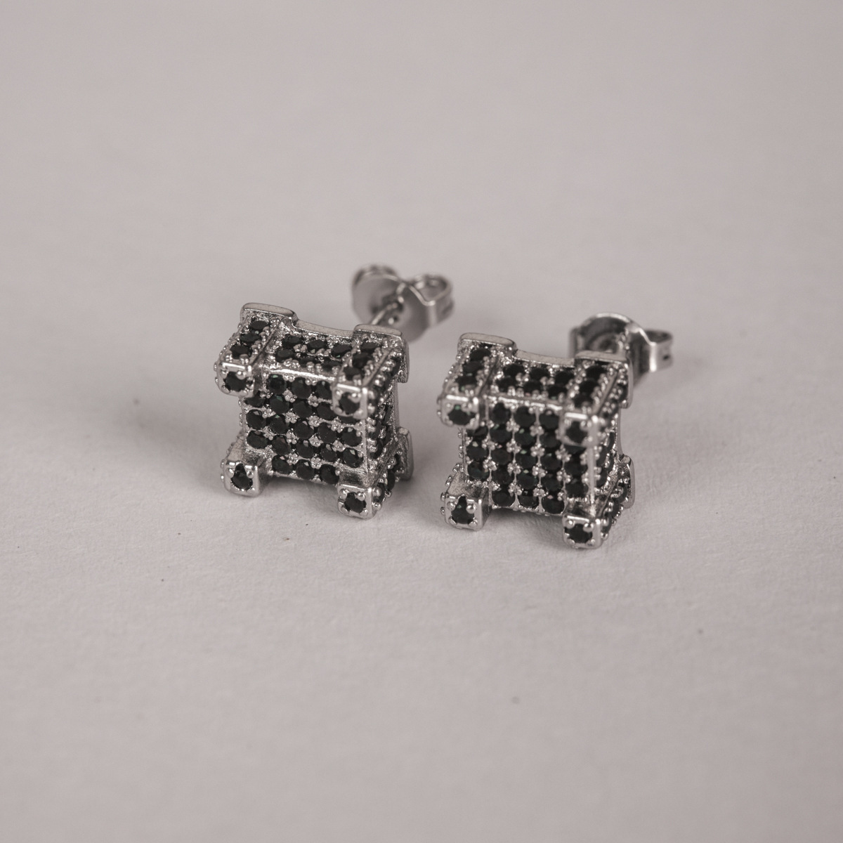 European and American Explosions Full Diamond Hip-Hop Men's Earrings Micro-inlaid Zircon Electroplated Round Square Street Personality Earrings