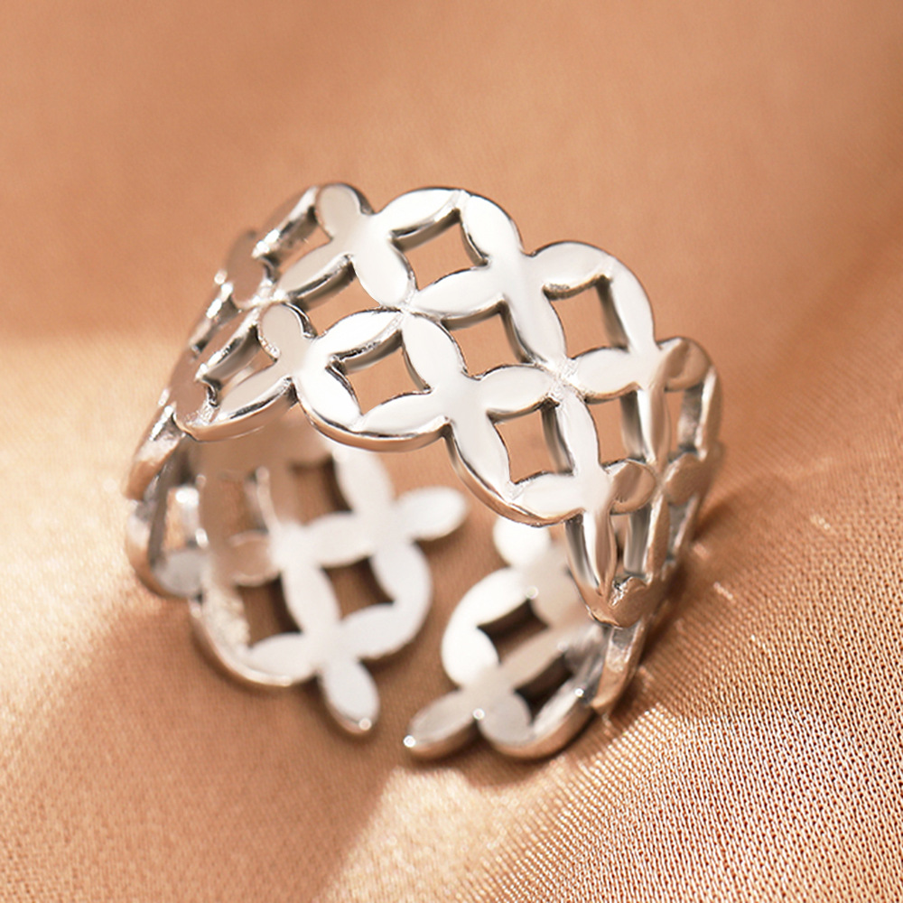 Bohemian Style Stainless Steel Open Ring Female Personality Hip Hop Line Titanium Steel Ring Wholesale