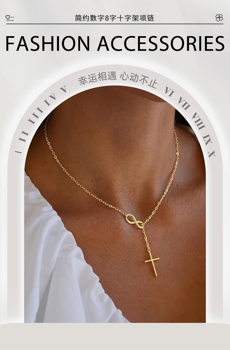 European and American Women's Trend Explosions Collarbone Chain Simple Digital 8-character Cross Short Necklace Jewelry Cross-border Explosions