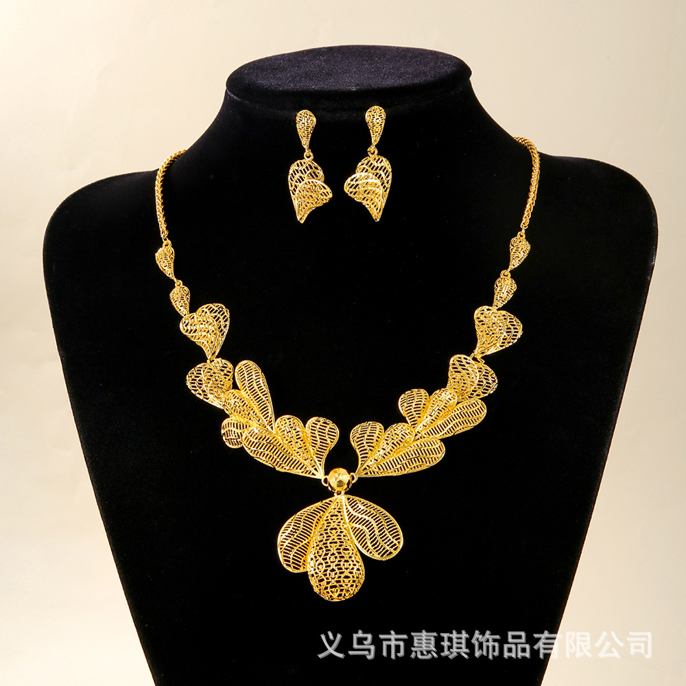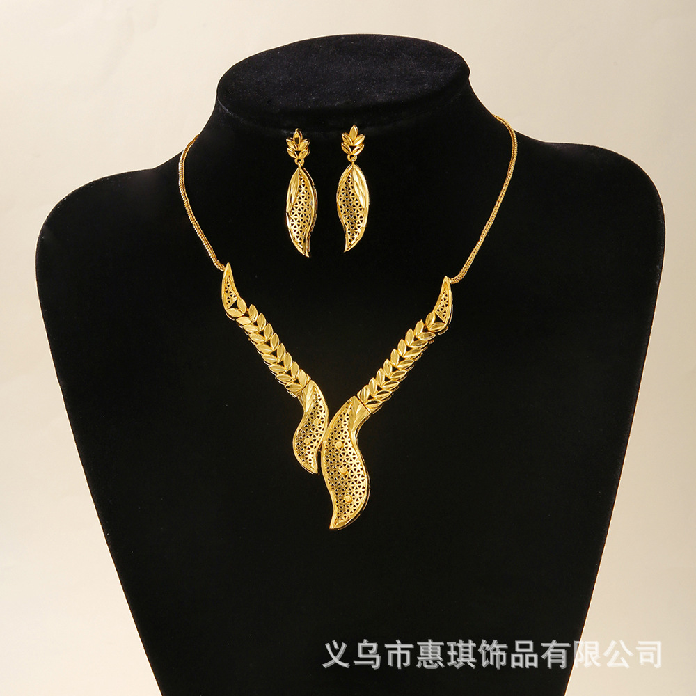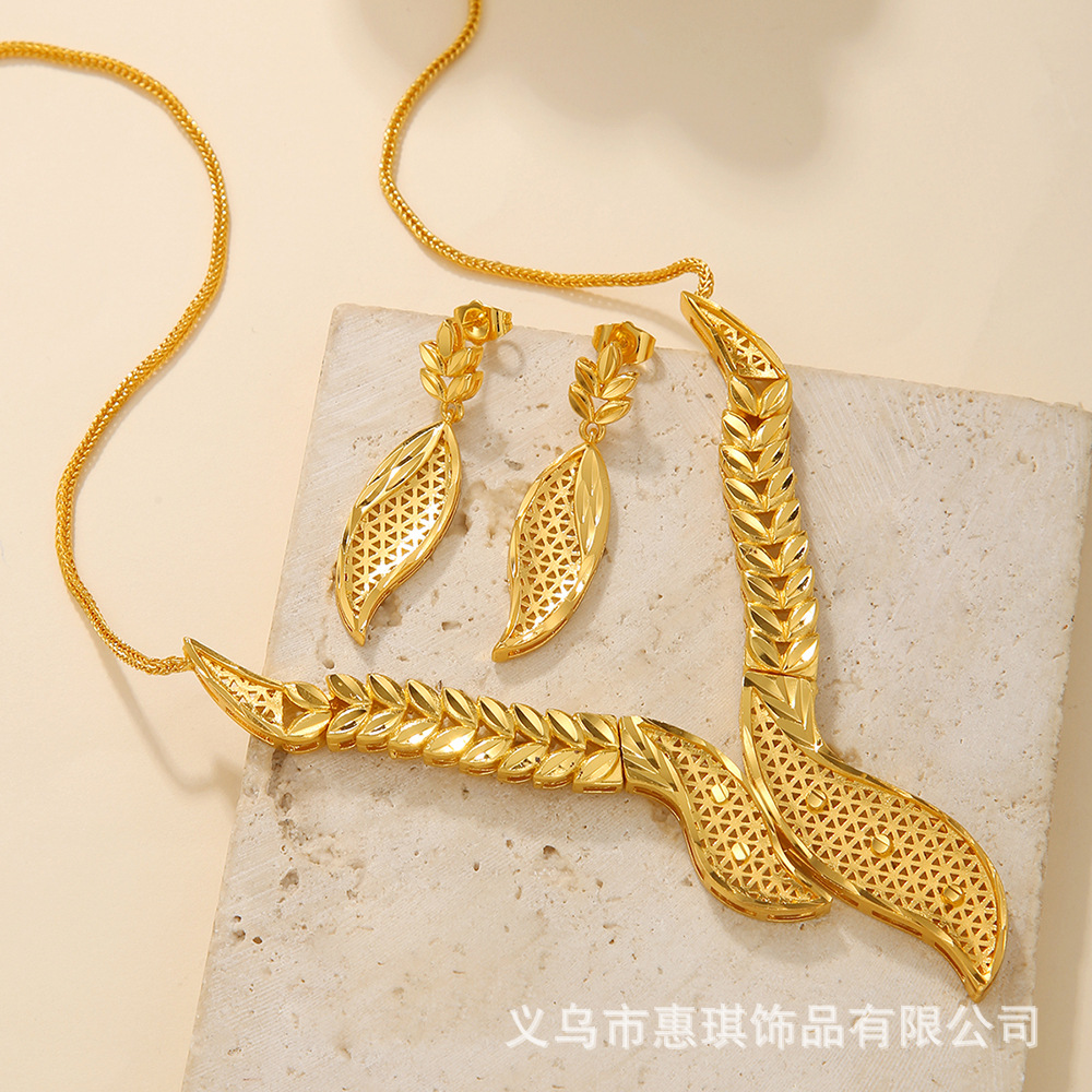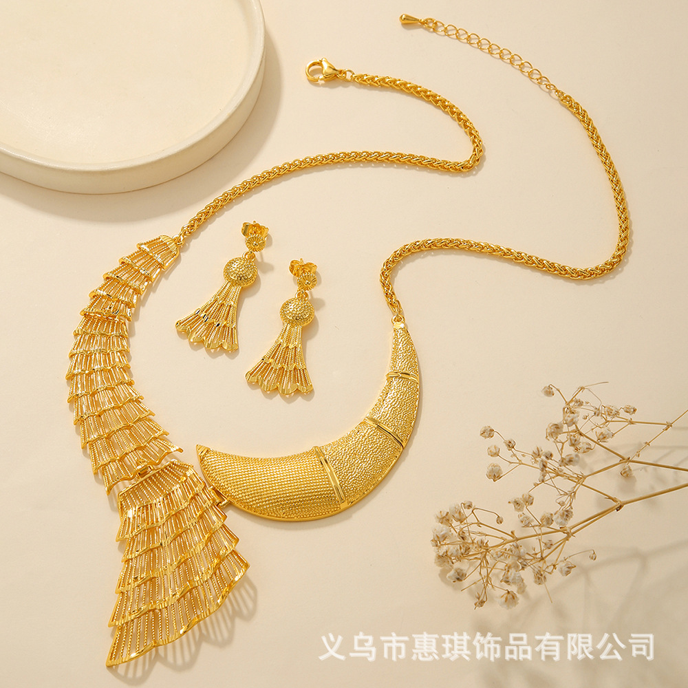 Dubai Middle East Bride Necklace Earrings Hollow Carved Exquisite Pattern Jewelry Jewelry Suitable for Women Wedding Banquet