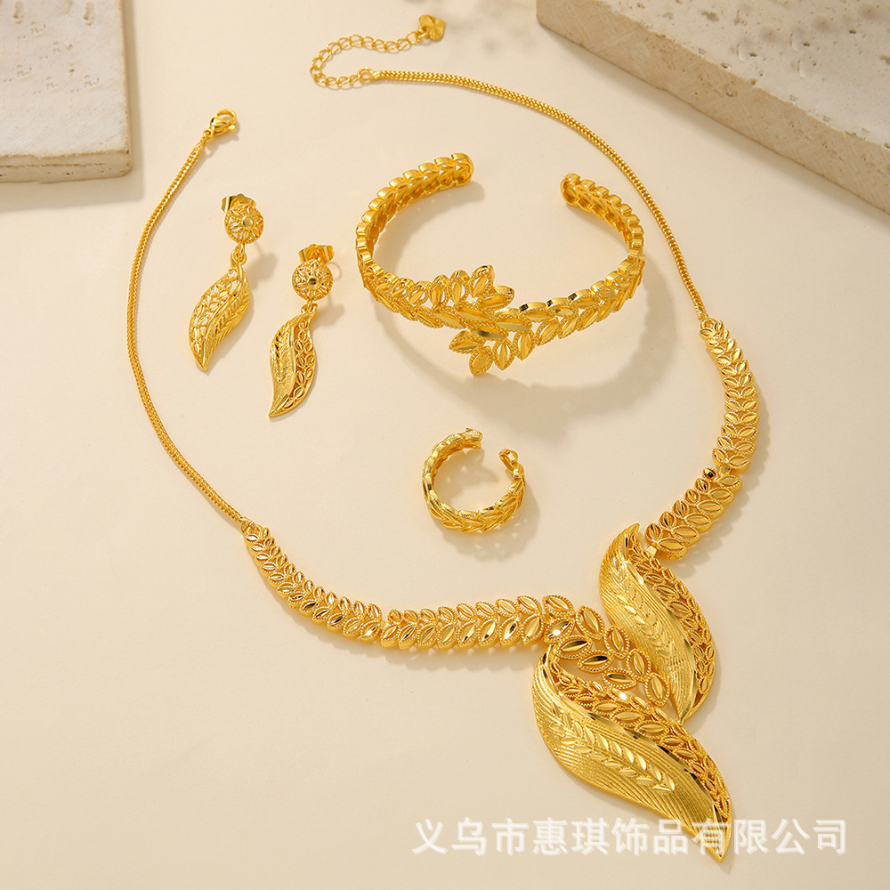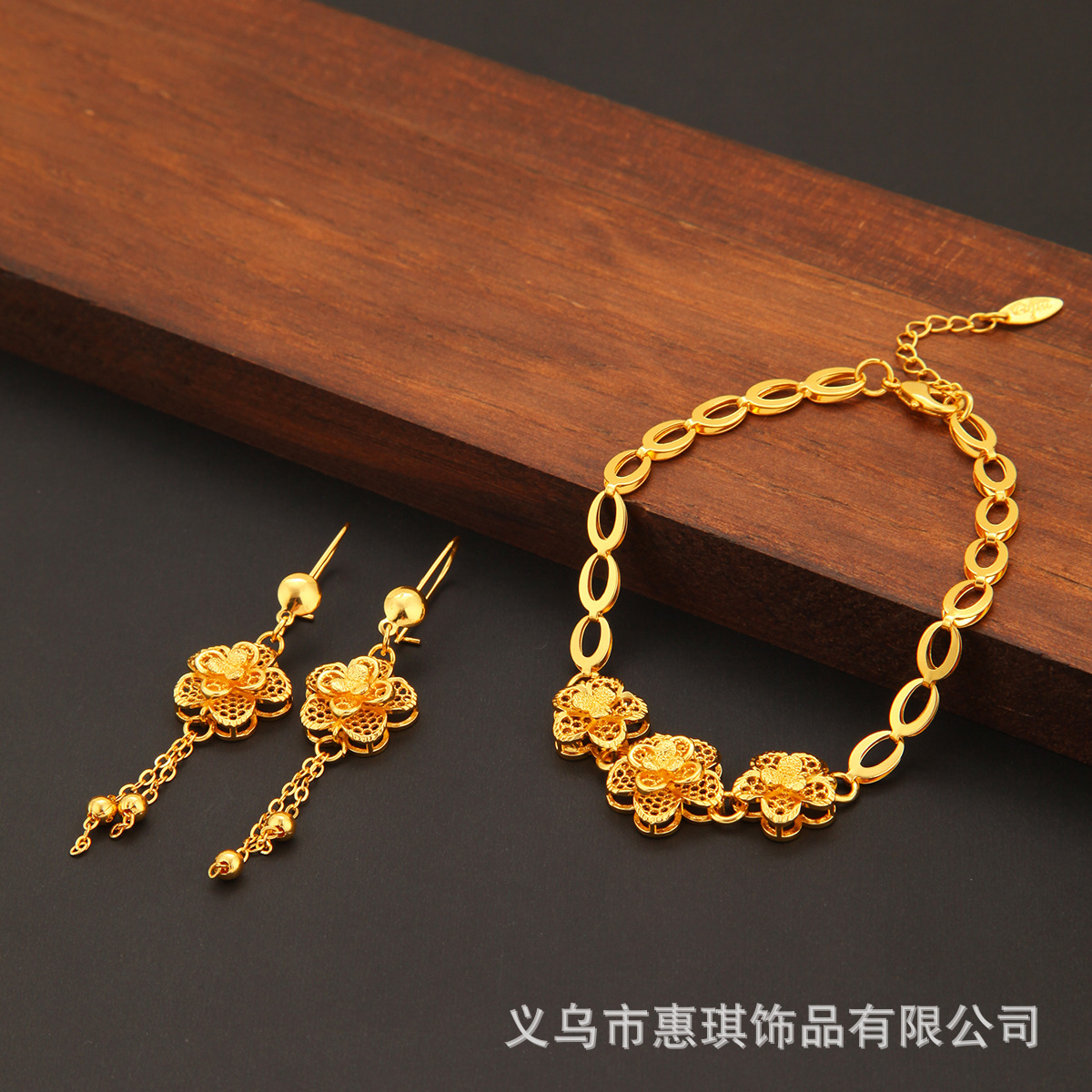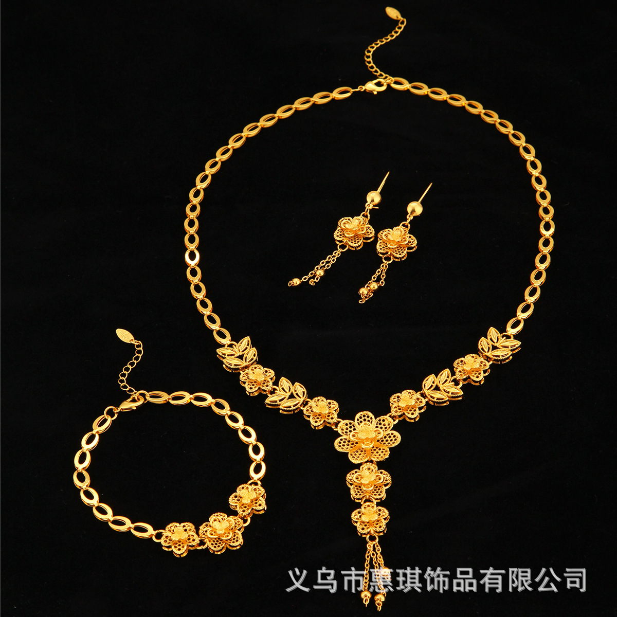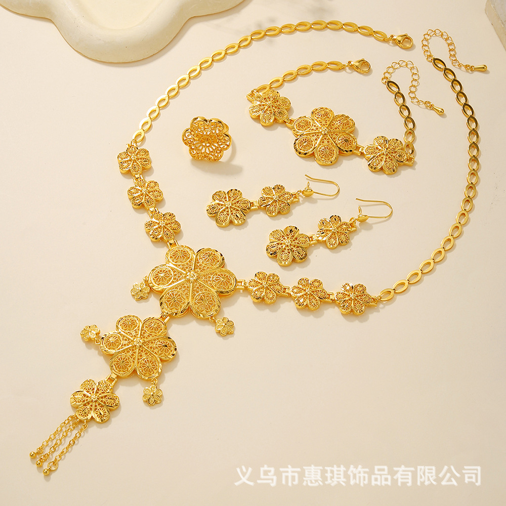 Dubai Middle East Bride Necklace Earrings Hollow Carved Exquisite Pattern Jewelry Jewelry Suitable for Women Wedding Banquet