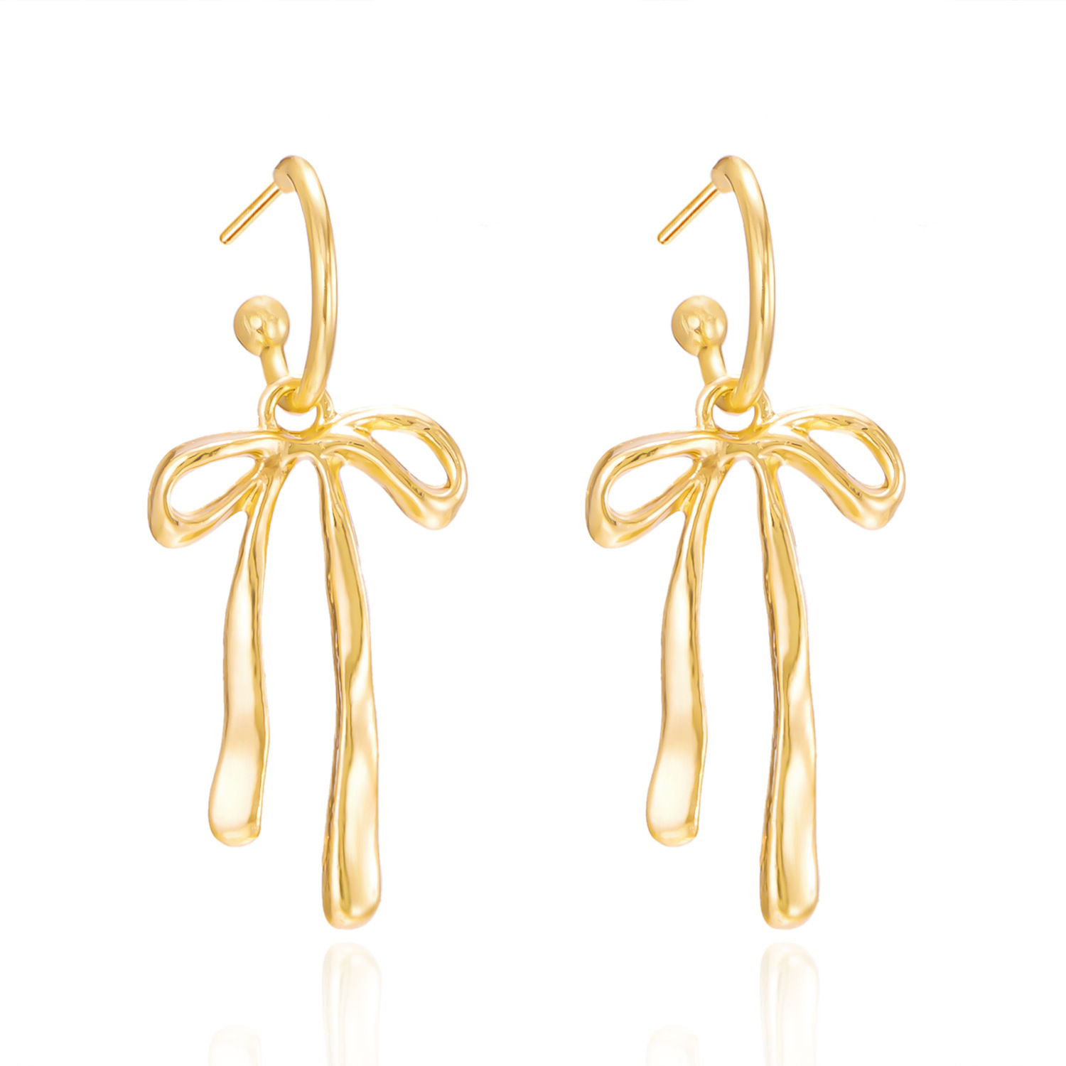Cross-border creative new bow tassel earrings simple temperament niche personality gold high-end earrings wholesale