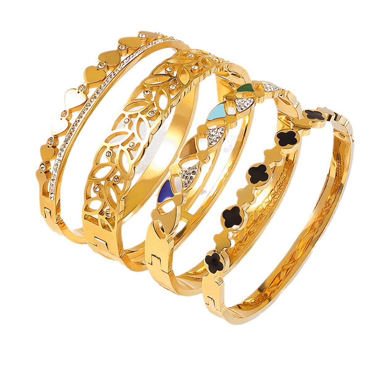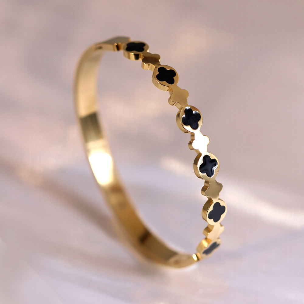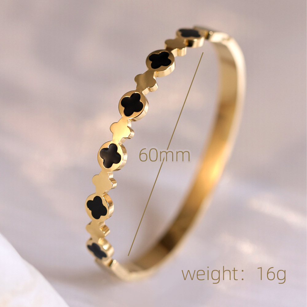 Cross-Border European and American Electroplated Hand Jewelry for Women Wholesale Women's High-End Non-Fading Jewelry Gold Four-Leaf Flower Titanium Steel Bracelet