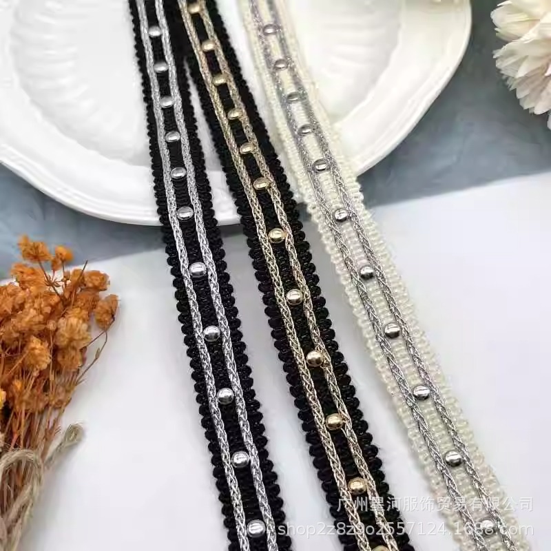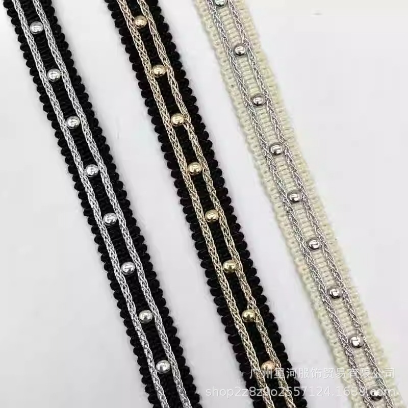About 1.4cm wide Bilateral gold and silver silk fixed nail webbing headdress hat brim collar cuff lace garment accessories