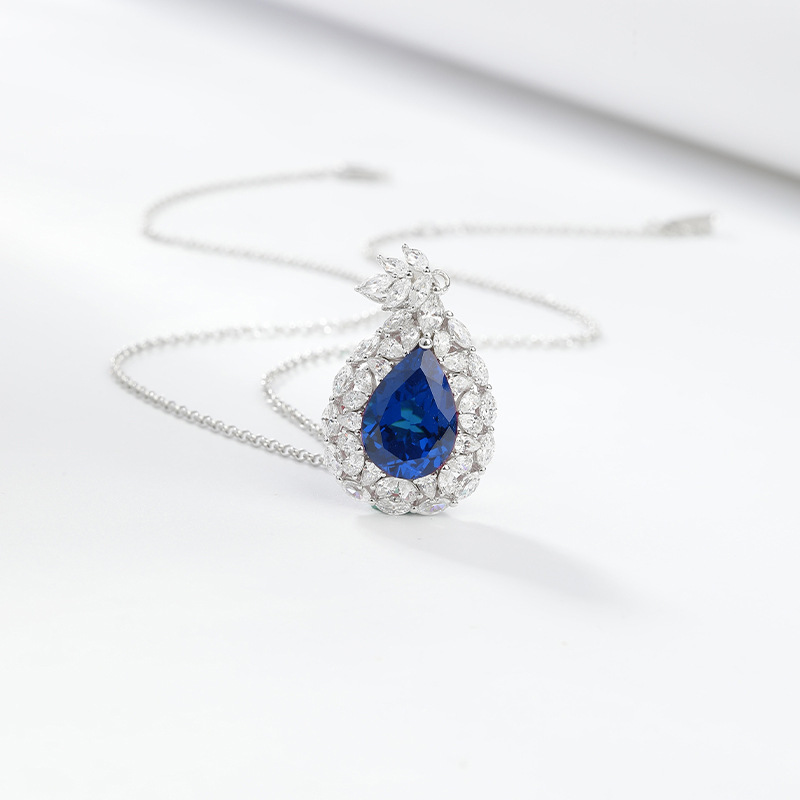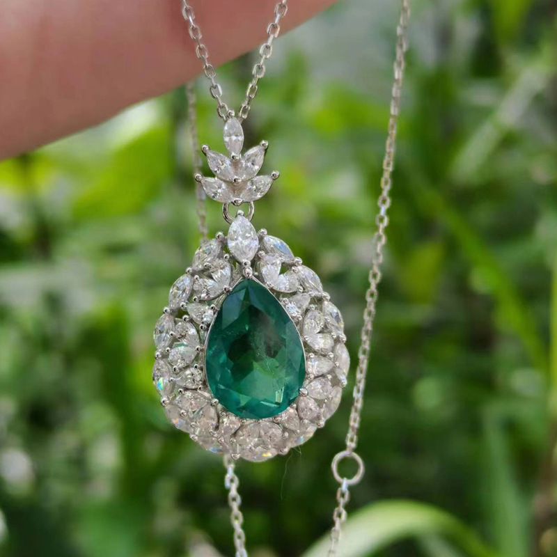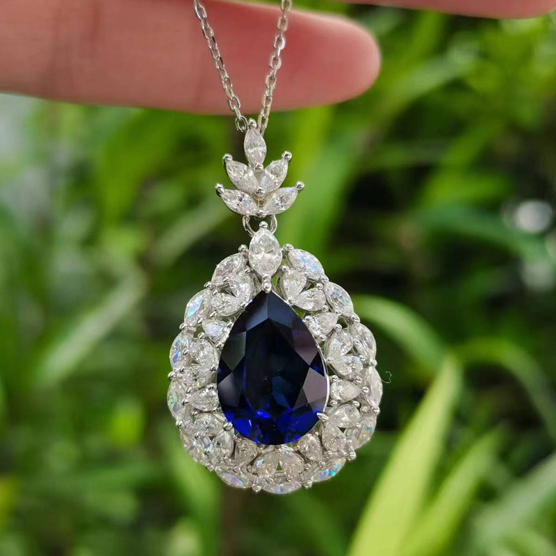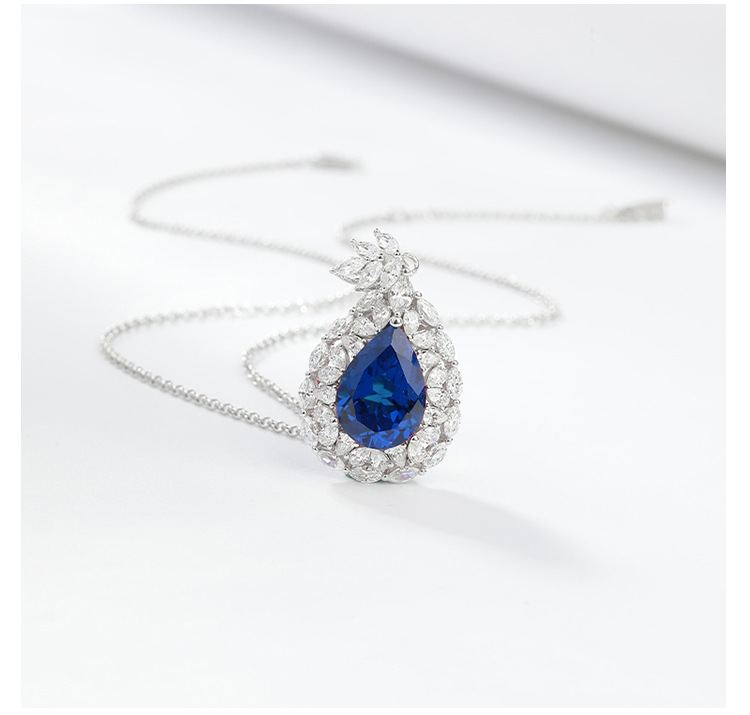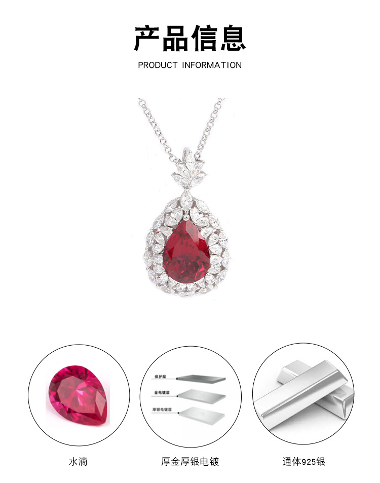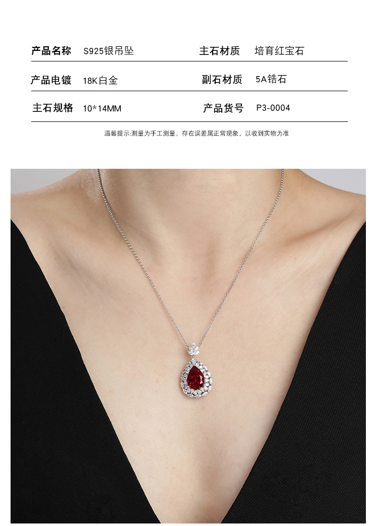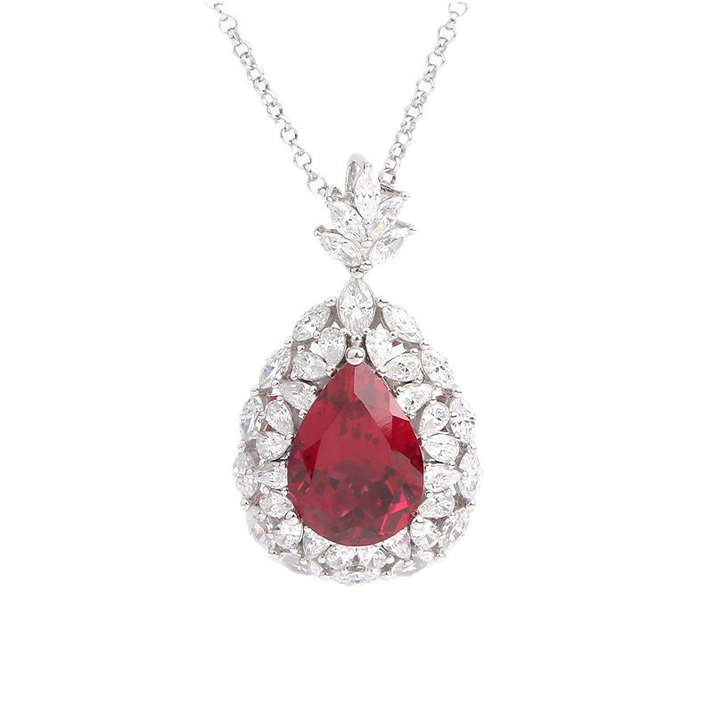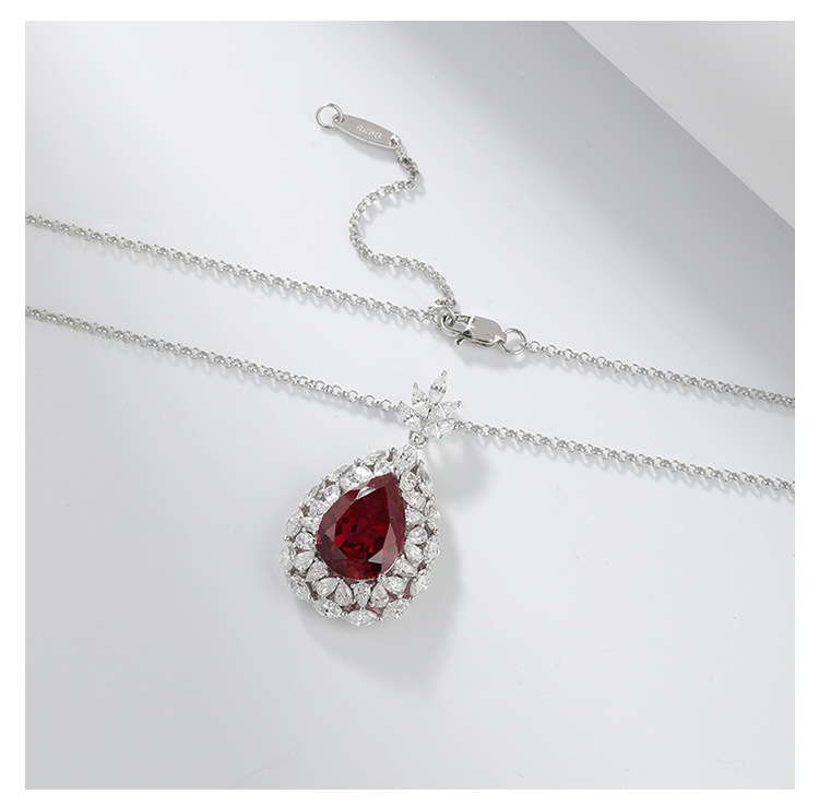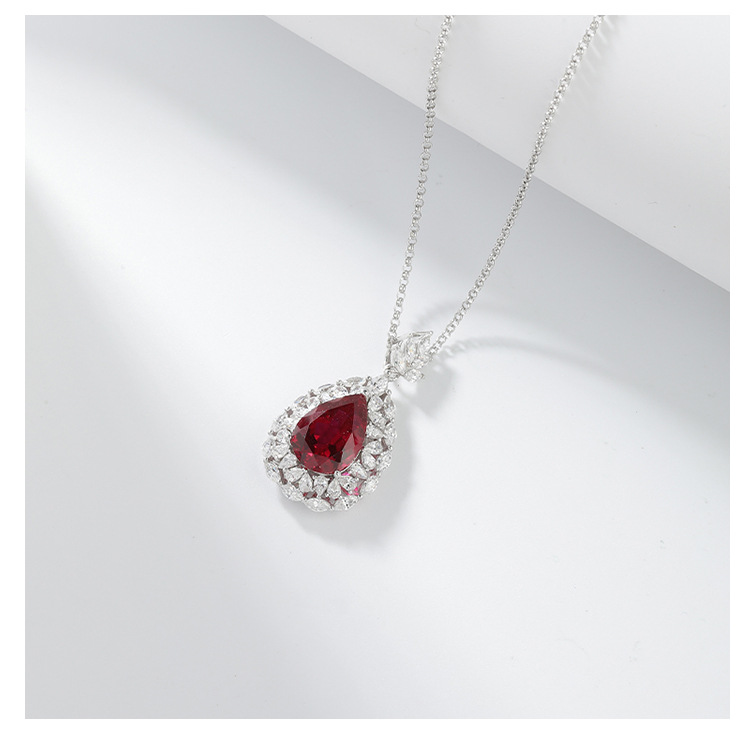 S925 Silver Artificially Cultivated Ruby Water Drop 10*14mm Sexy Women's Necklace Niche Elegant Colorful Treasure Pendant