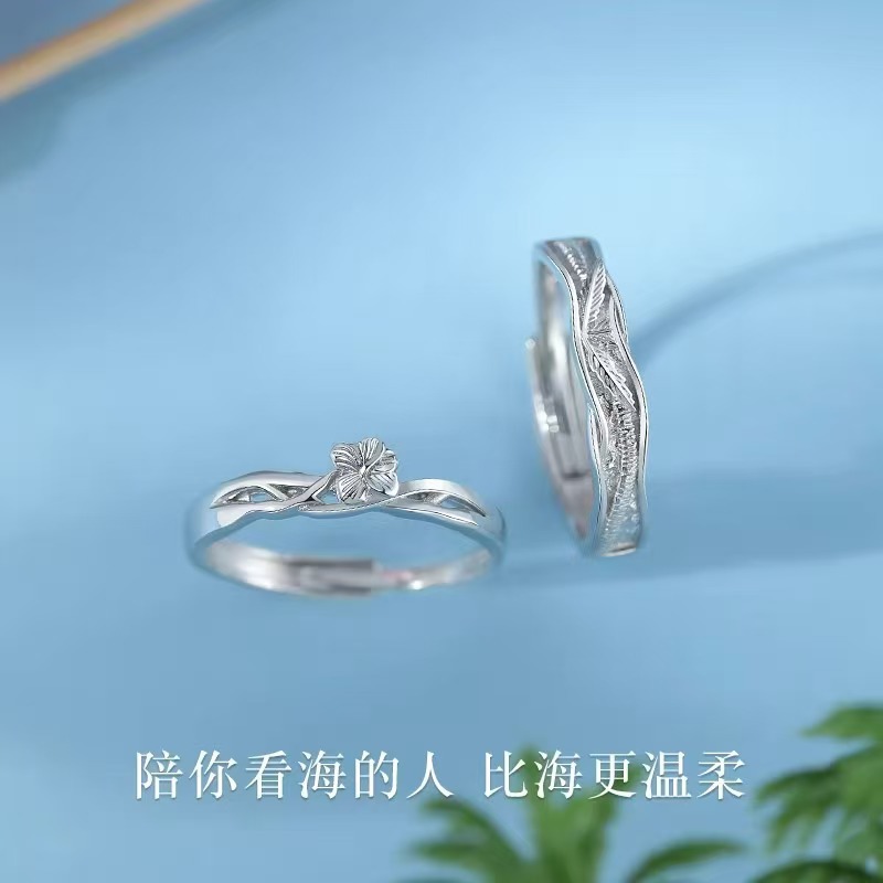 Hawaiian Sterling Silver Couple's Ring Niche Design Female Male Pair Light Luxury High-end Ring Fashion Birthday Gift