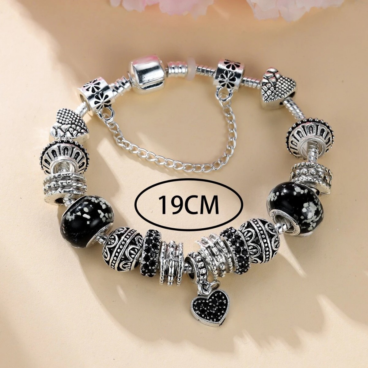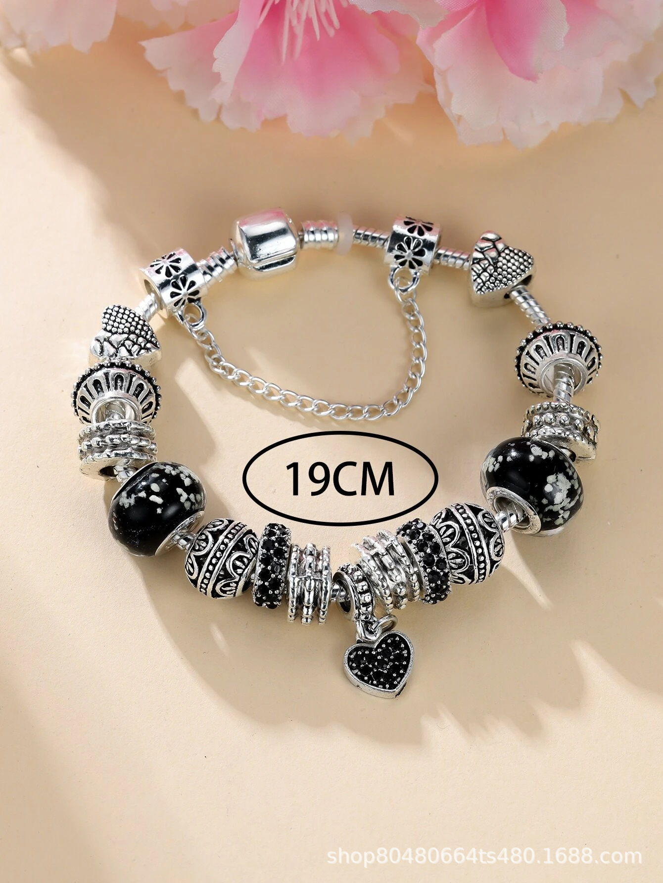 Panjia Bracelet Dora DIY Beaded Cross-border Explosions Retro Black Rhinestone Love Pendant Cherry Blossom Ceramic Beads