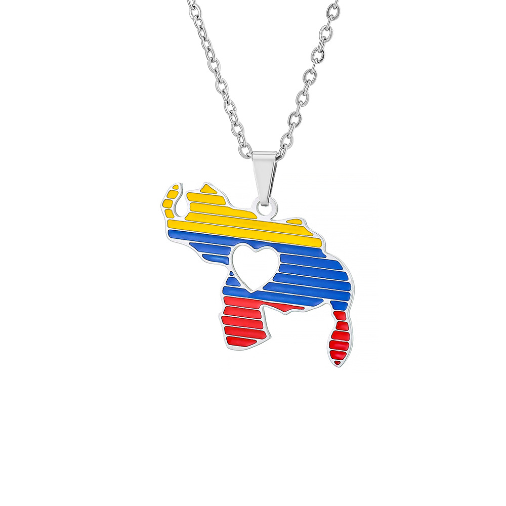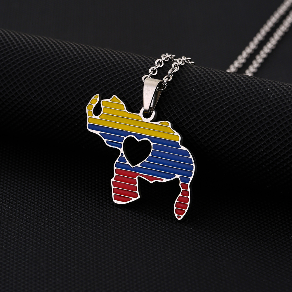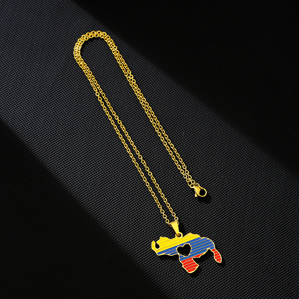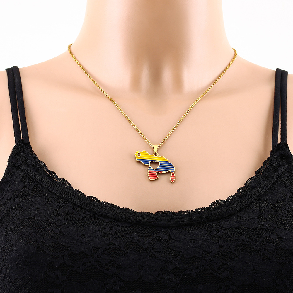 Cross-border TEMU Hot Selling Stainless Steel Oil Dropping Venezuela Love Pendant Necklace Wool Chain High-grade Sense Accessories