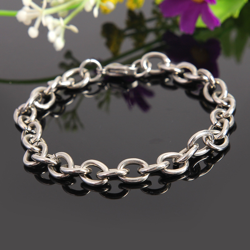 Color: Thick men's bracelet chain + silver 30mm outer hole round (assembled)