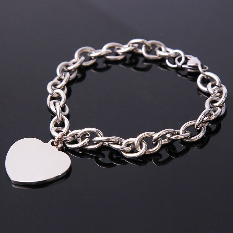Color: Thin women's bracelet chain + 25mm heart shape (assembled)