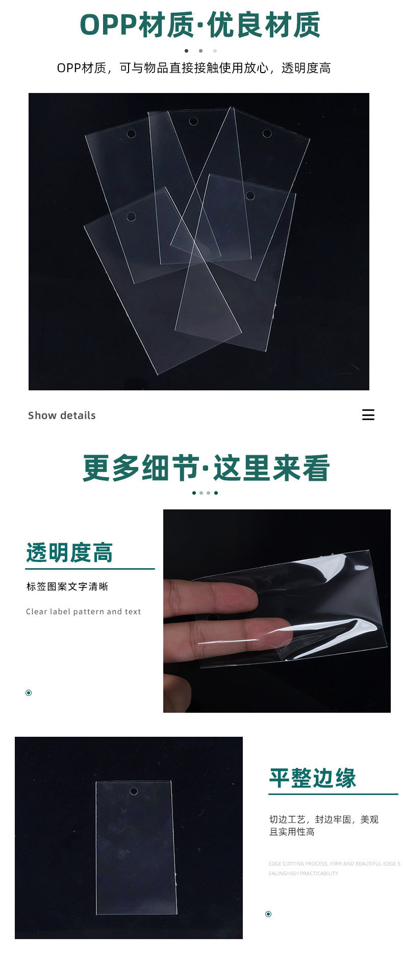 Specification model: 100 pieces of 7.5*11cm opp tag bags
