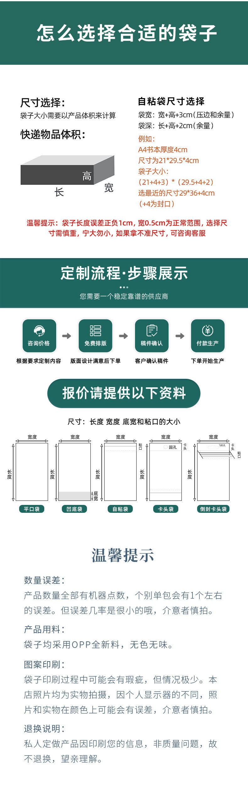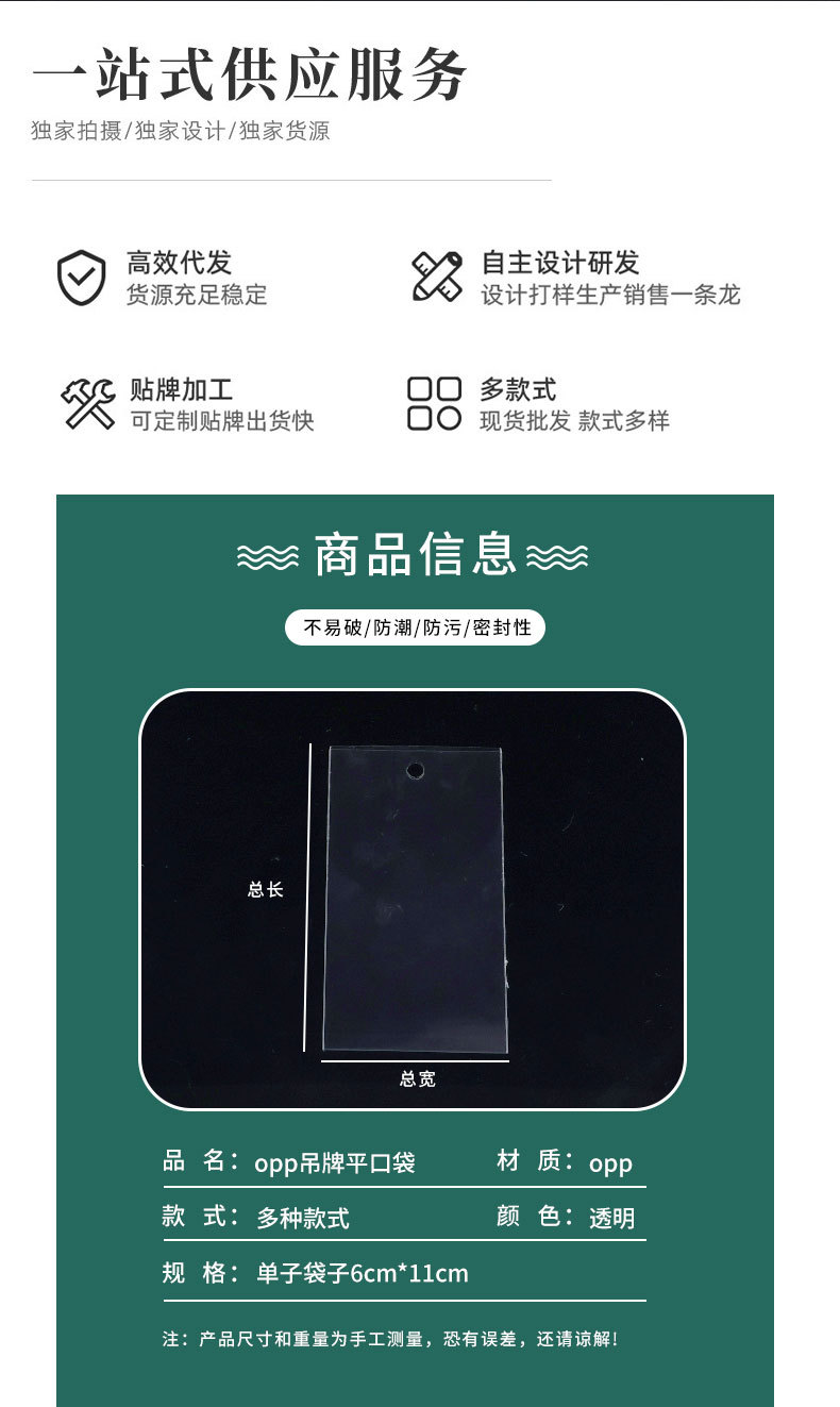 Specification model: 100 pieces of 6.5*10.5cm opp tag bags