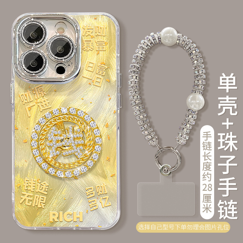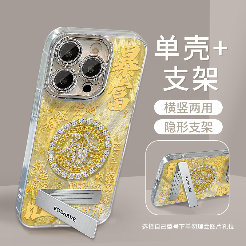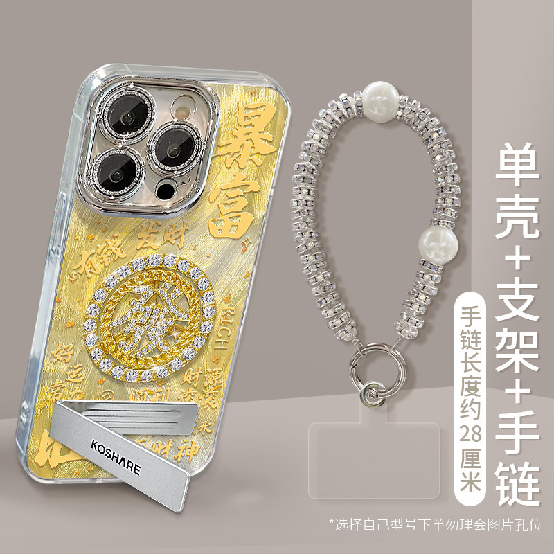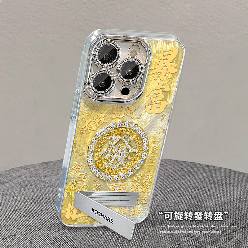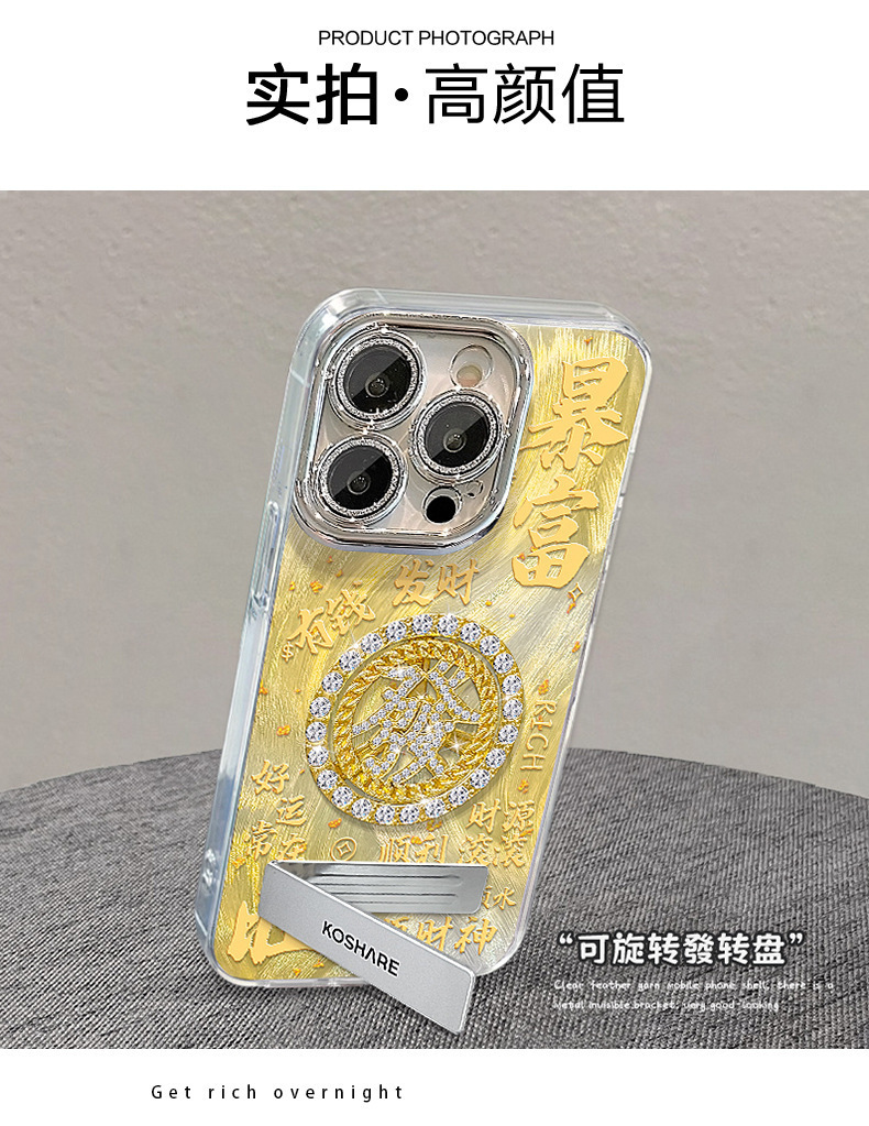 暴富發转盘支架手链适用苹果16羽纱手机壳15PRO中国风14/13镜头膜