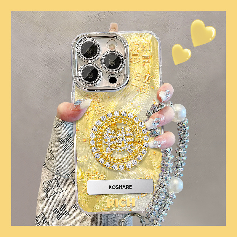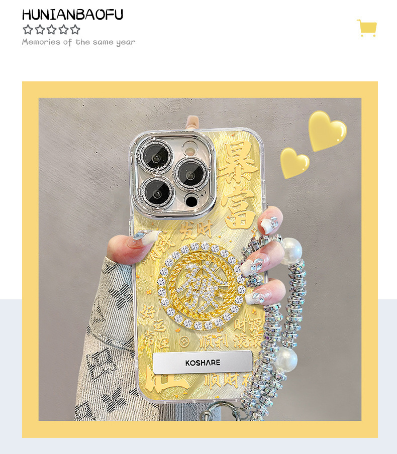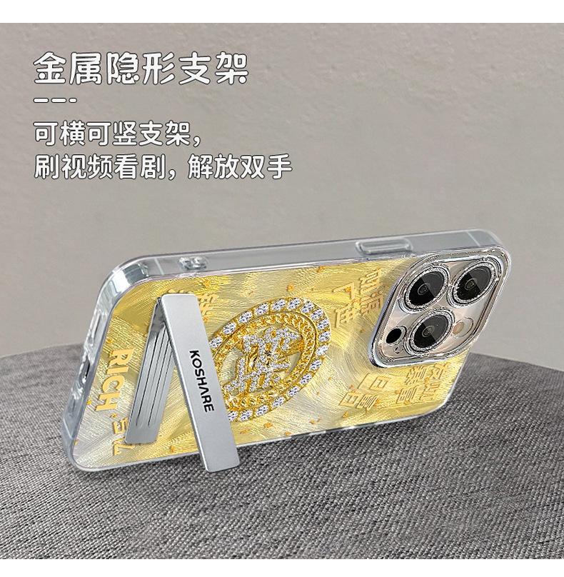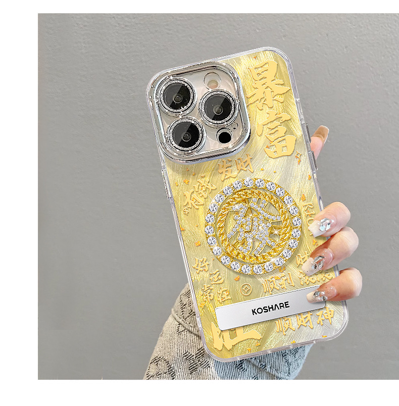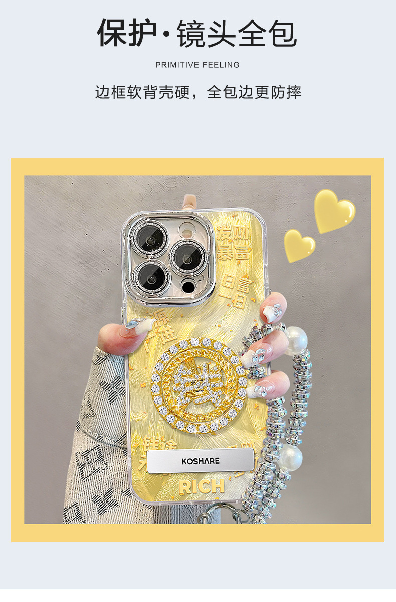 暴富發转盘支架手链适用苹果16羽纱手机壳15PRO中国风14/13镜头膜