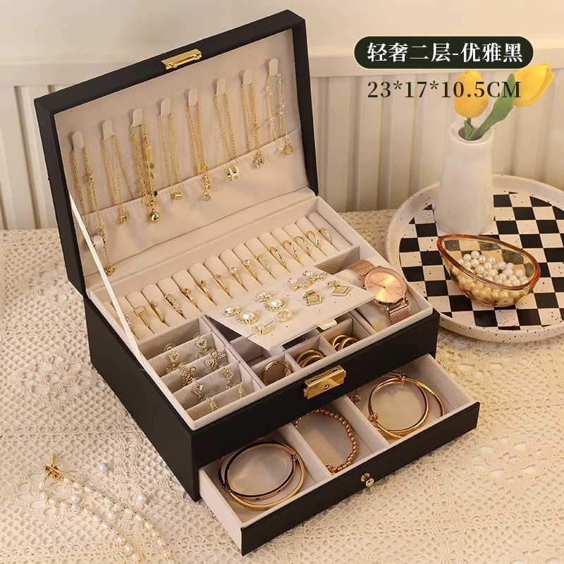 Color: Double-layer jewelry box [elegant black] high-quality leather