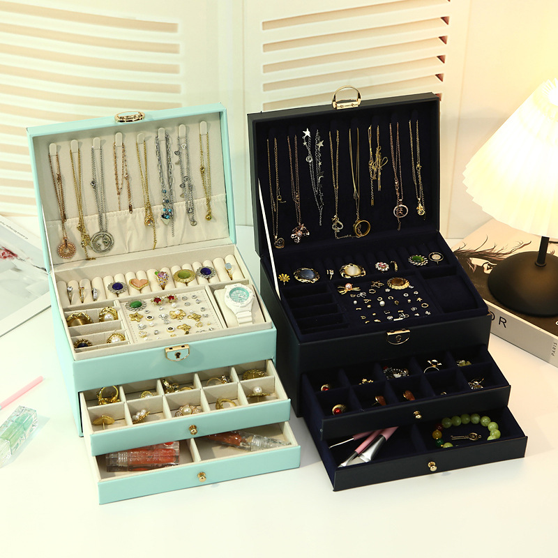 Color: Three-layer jewelry box [retro green] high-quality leather