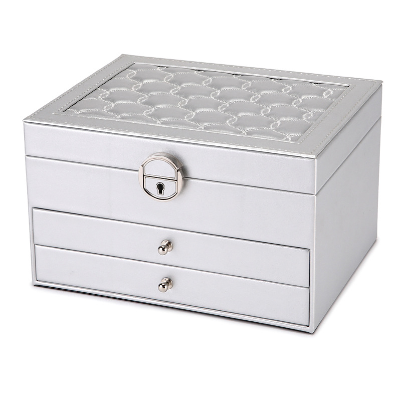 Color: Double layer jewelry box [pearl white] high quality leather