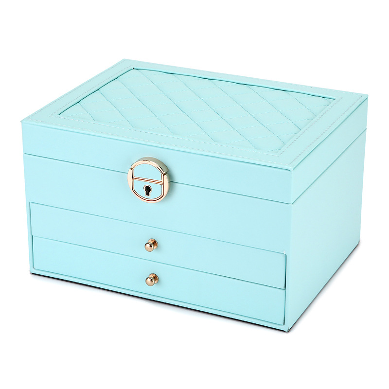 Color: Three-layer jewelry box [tiffany blue] high-quality leather