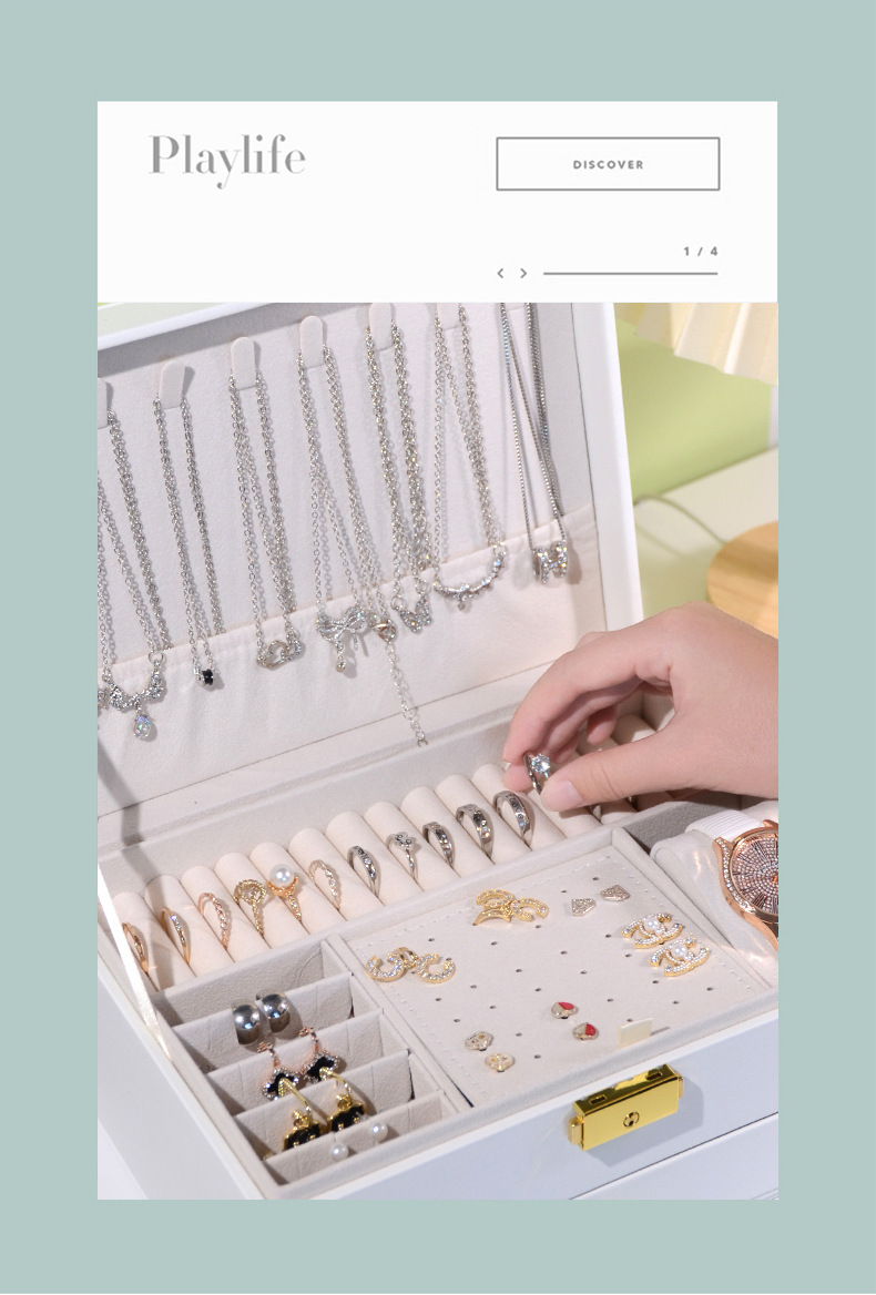 Appearance: Quilted, oval three-layer jewelry storage box is high-end and exquisite