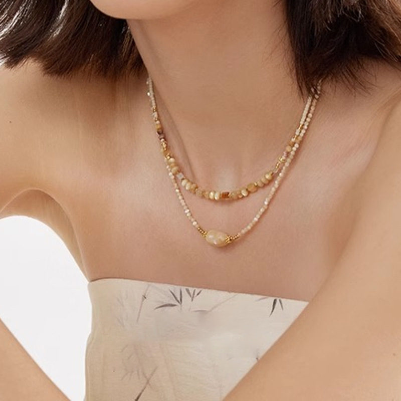 Shahai Tribe New Chinese Style Natural Stone High-grade Retro Niche Design Beaded Stacked Necklace