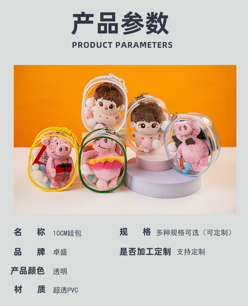 Color: Transparent empty bag with double pull head (excluding hanging buckle, fur ball and baby)