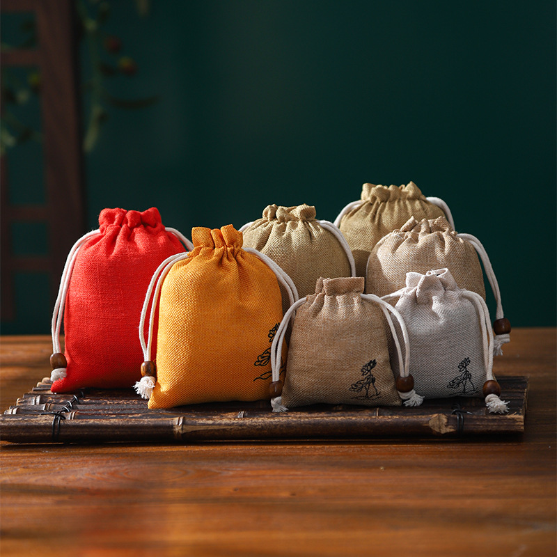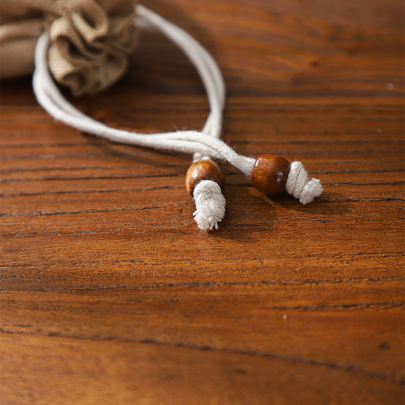 Drawstring Bag for Storing and Handling Buddhist Prayer Beads, Featuring Lotus Design and Made of Linen