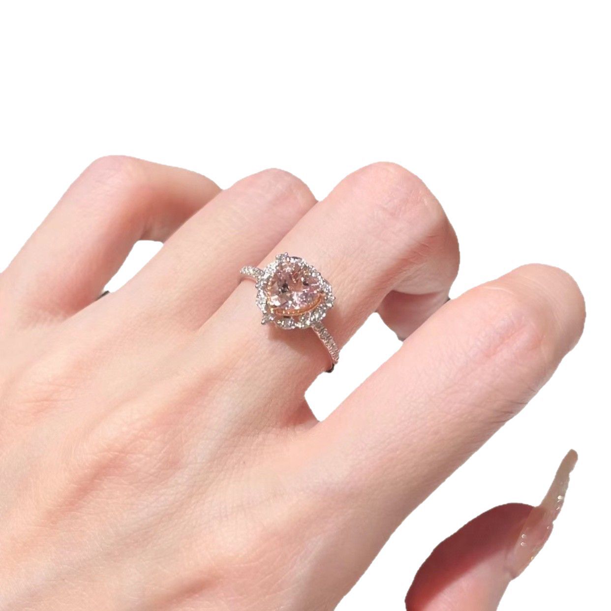 Beloved Laurel Heart Ring Women's Pink Diamond Girl's Heart Escape Princess Love Necklace All-match Exquisite and Sweet Temperament