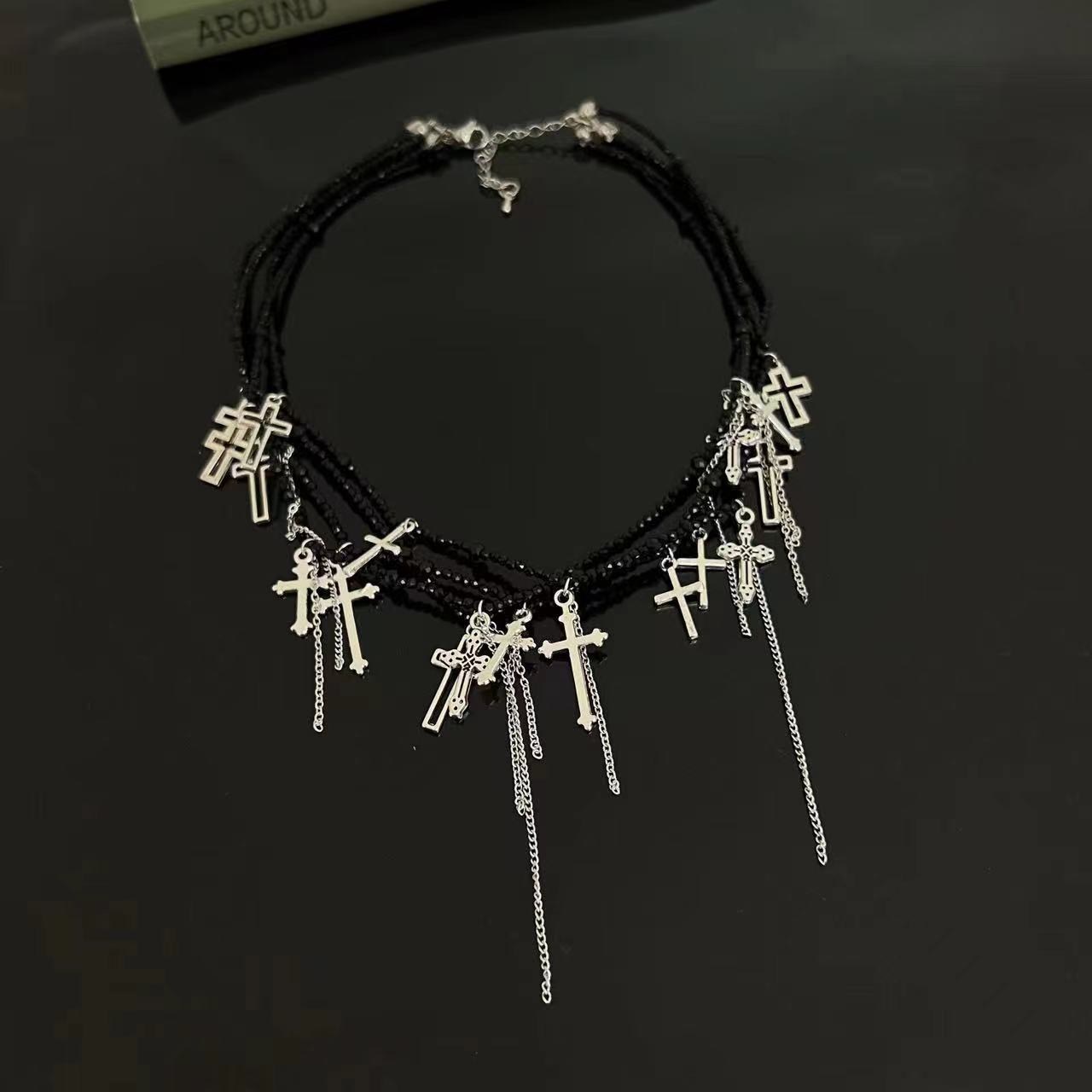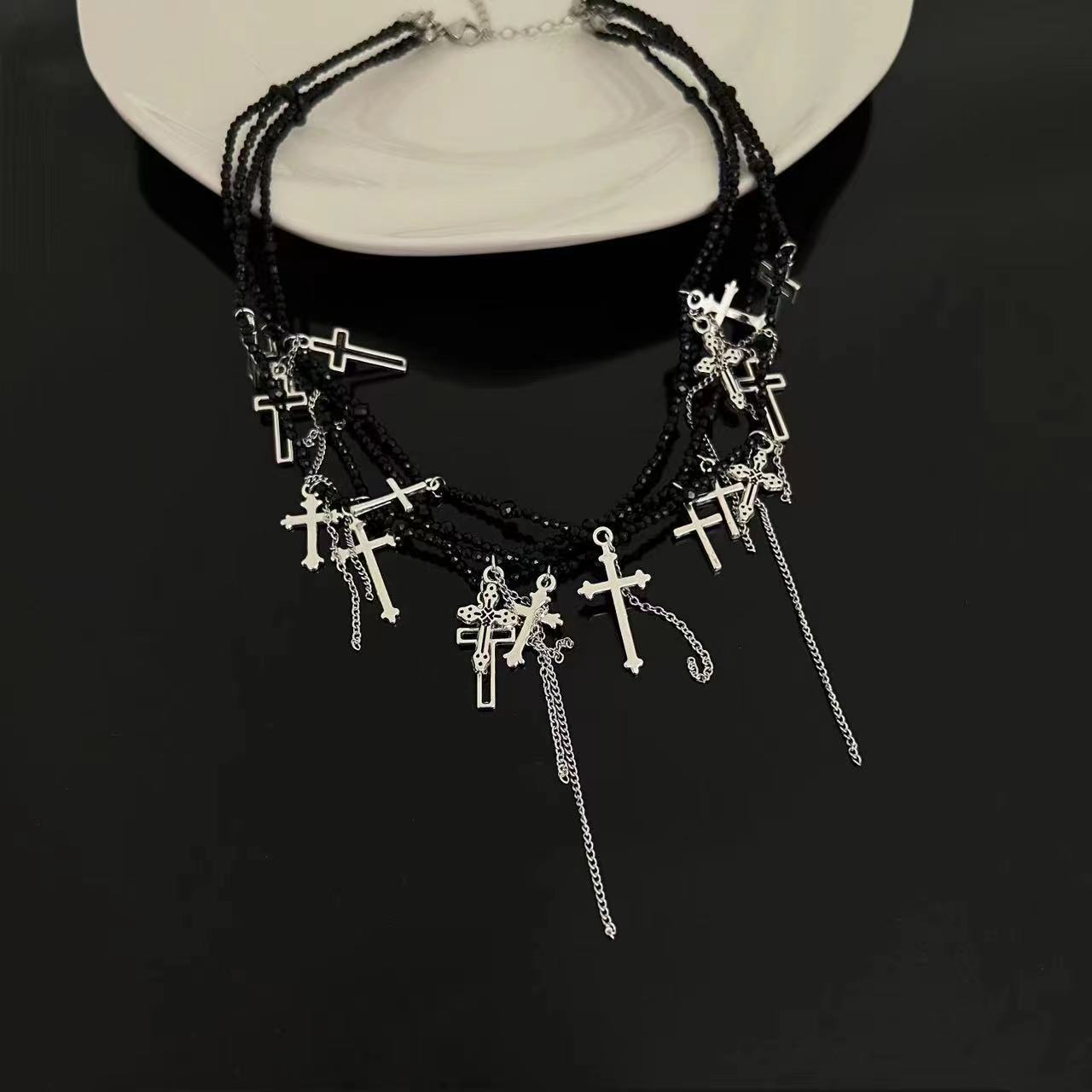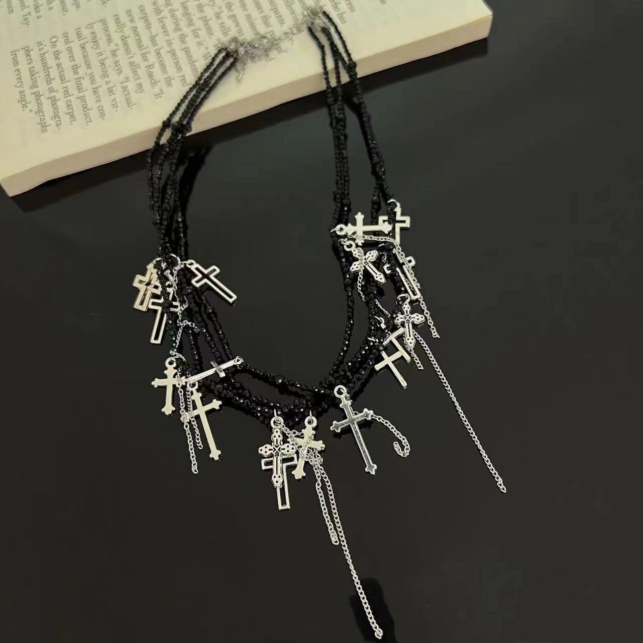 European and American Dark Cross Tassel Multi-layer Beaded Necklace Bracelet Niche Elegant Sexy Light Luxury High-end Jewelry for Women